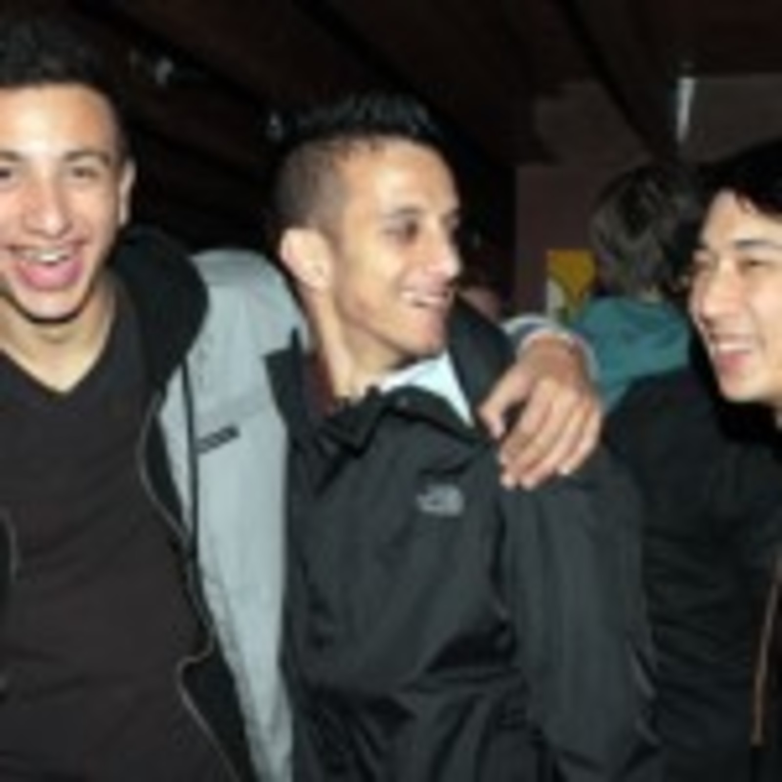 Obada Al-Attal and Karim Hanafy from the Ballinger Way Delivery Kitchen and Shift Leader Brittian Piper from the University Pizzeria share a laugh.