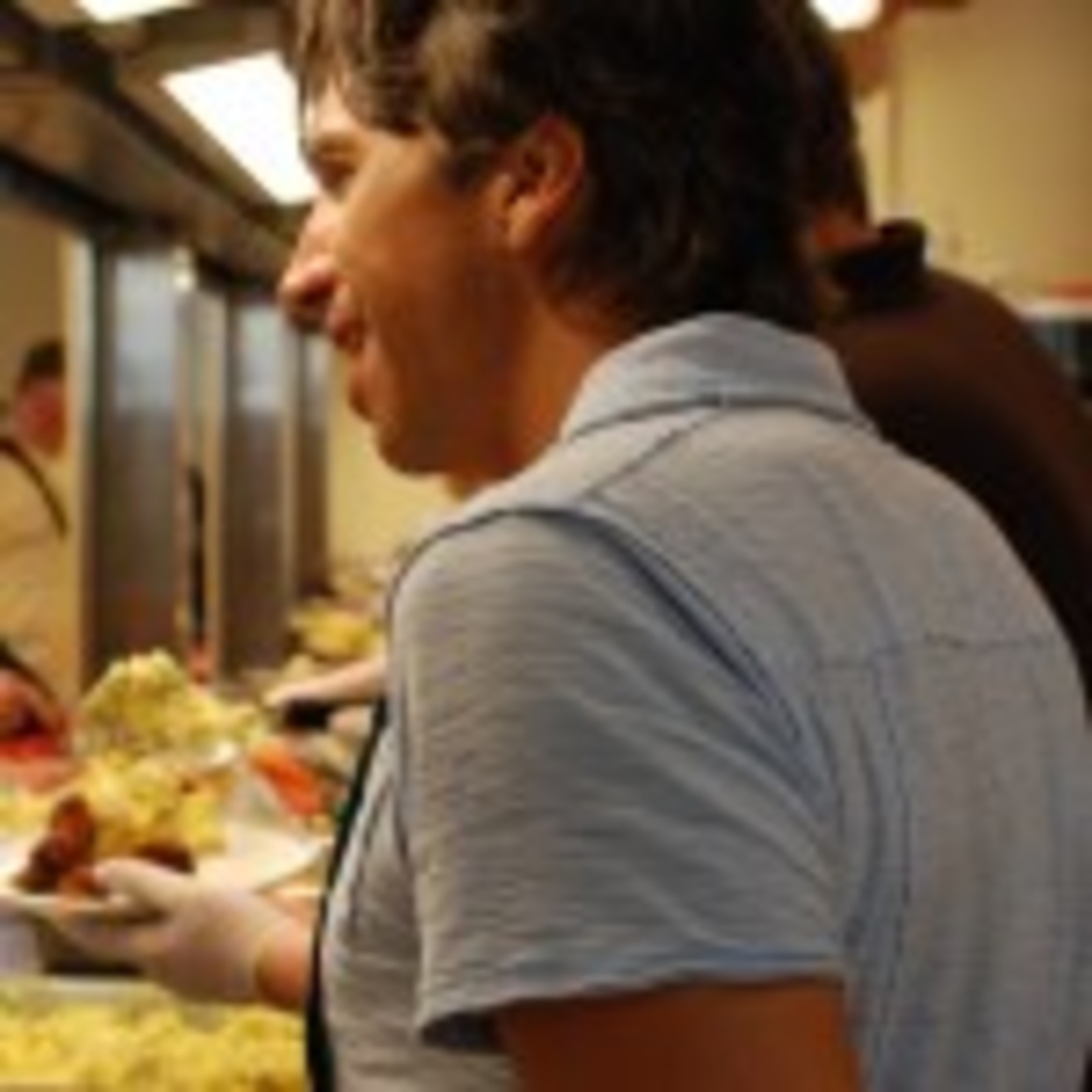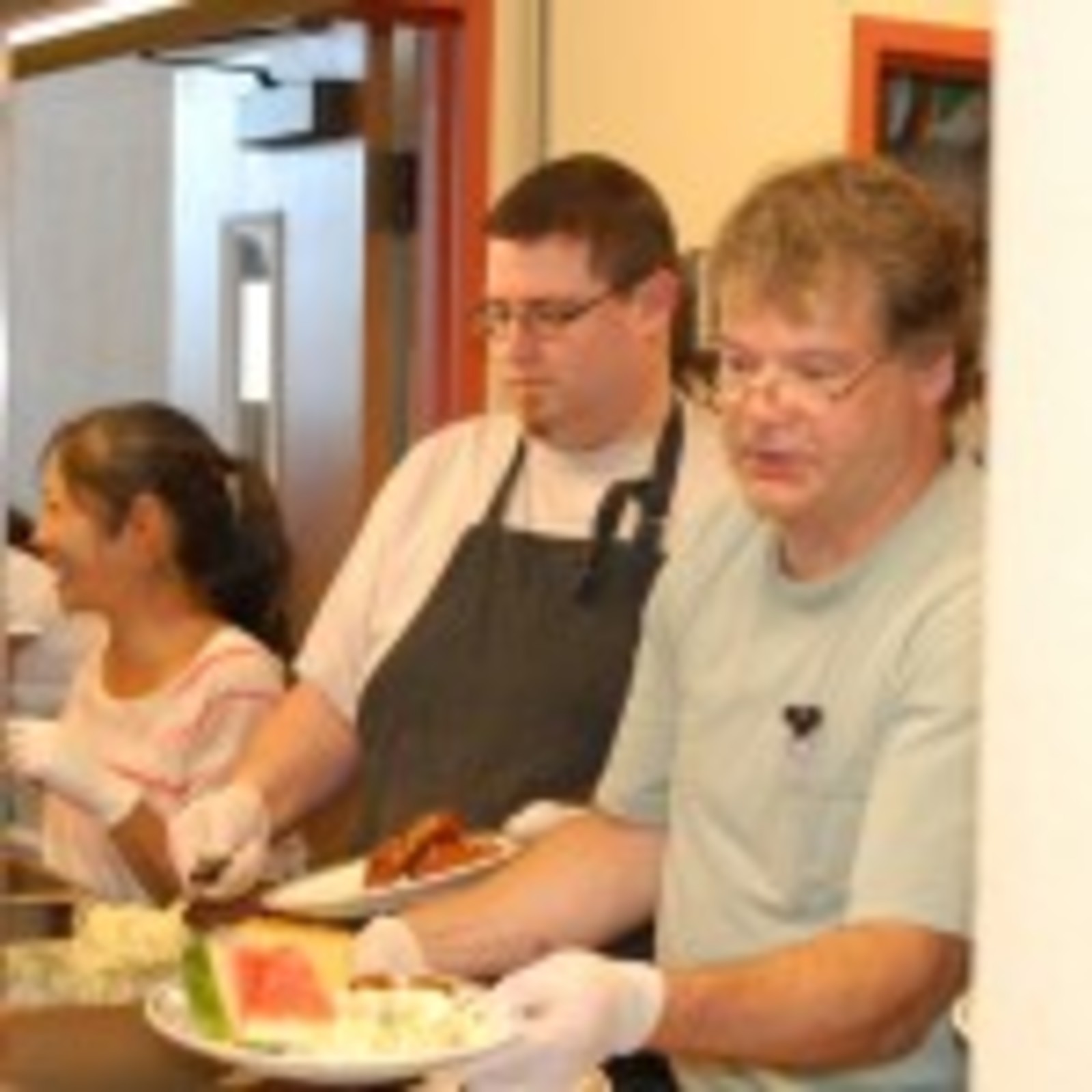 Michelle, Paul and Jim help serve dinner.