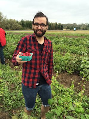 The purpose of gathering so many managers up in Skagit Valley was two-fold: To meet the people that grow the squash each store roasts daily for the Butternut Sage Primo and to make the preserved lemons used on the Tuscan Kale pizza. Unfortunately, the visit occurred just a couple of days after the massive late summer windstorm that hit Western Washington on August 29th. While some of the crops hadn’t fared well, and the farm stand had been destroyed, the managers were still able to tour the squash fields and hoop houses, picking raspberries and tomatoes. Because lunch and the making of preserved lemons were to have occurred in the farm stand, they had to be moved over to the nearby Washington State Agricultural Center. One of the farmers from Viva Farms delivered an excellent home-cooked lunch made with Viva Farms produce. Managers enjoyed zucchini rellenos, enchiladas, tamales, two fresh salsas, and kale salad with a berry dressing. Dessert was two crisps: one berry, one rhubarb.