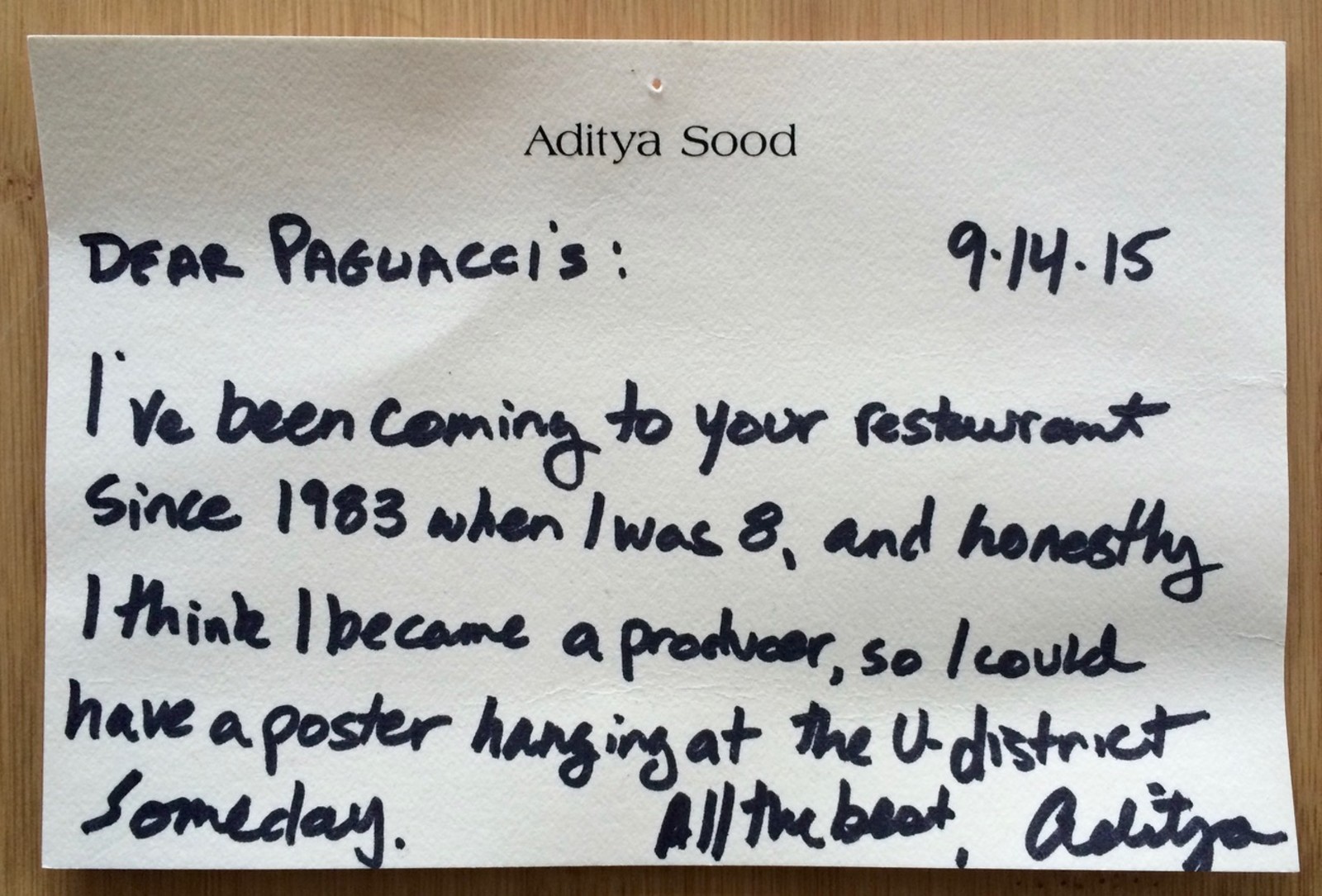 Years later, when I became a co-owner of Pagliacci, Dorene, Pagliacci's founder, scribbled out an address in Rome and said, “This is where you get the posters.” It was a secret almost as big as the recipe for the sauce.