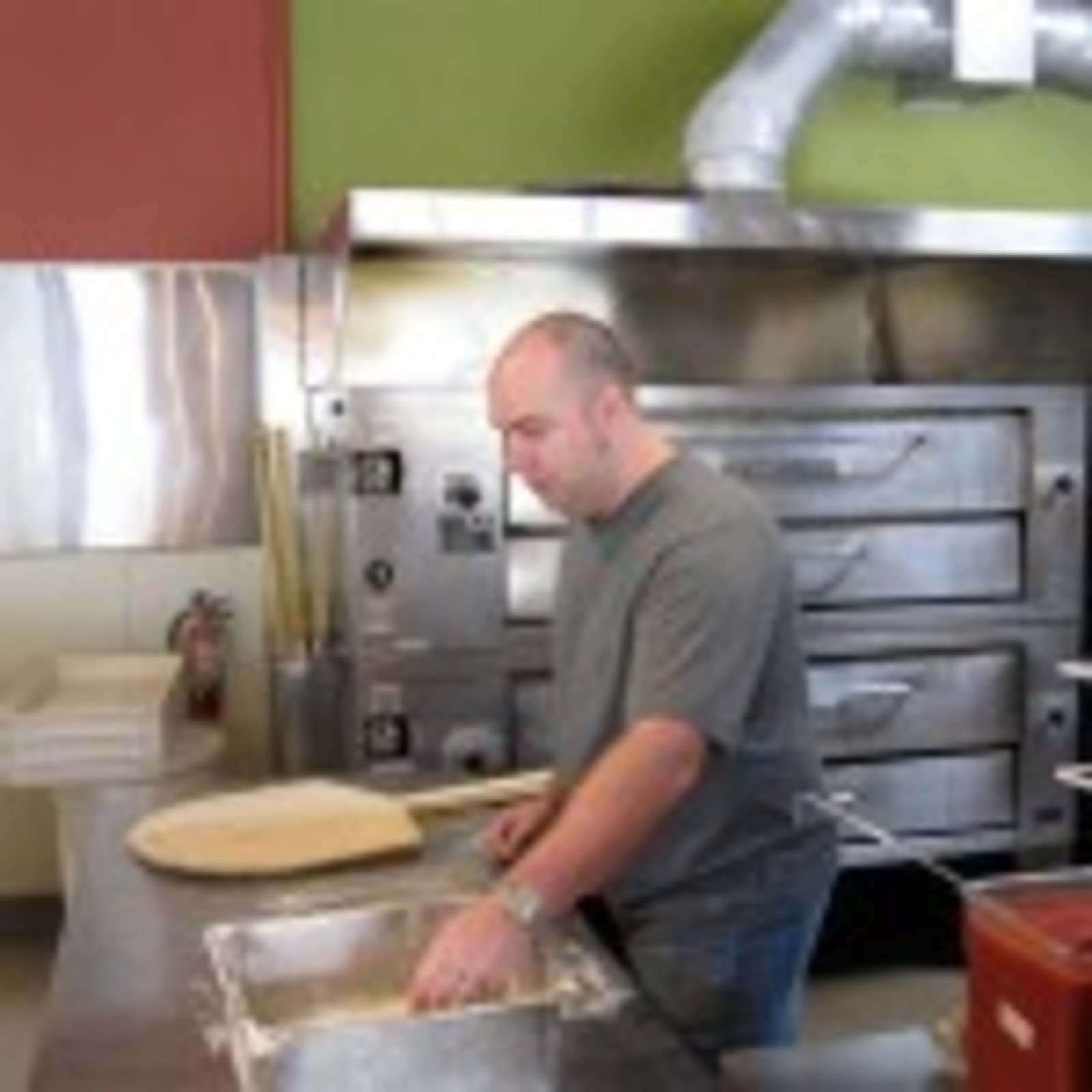 Josh Frost readies his dough ball with a little flour.