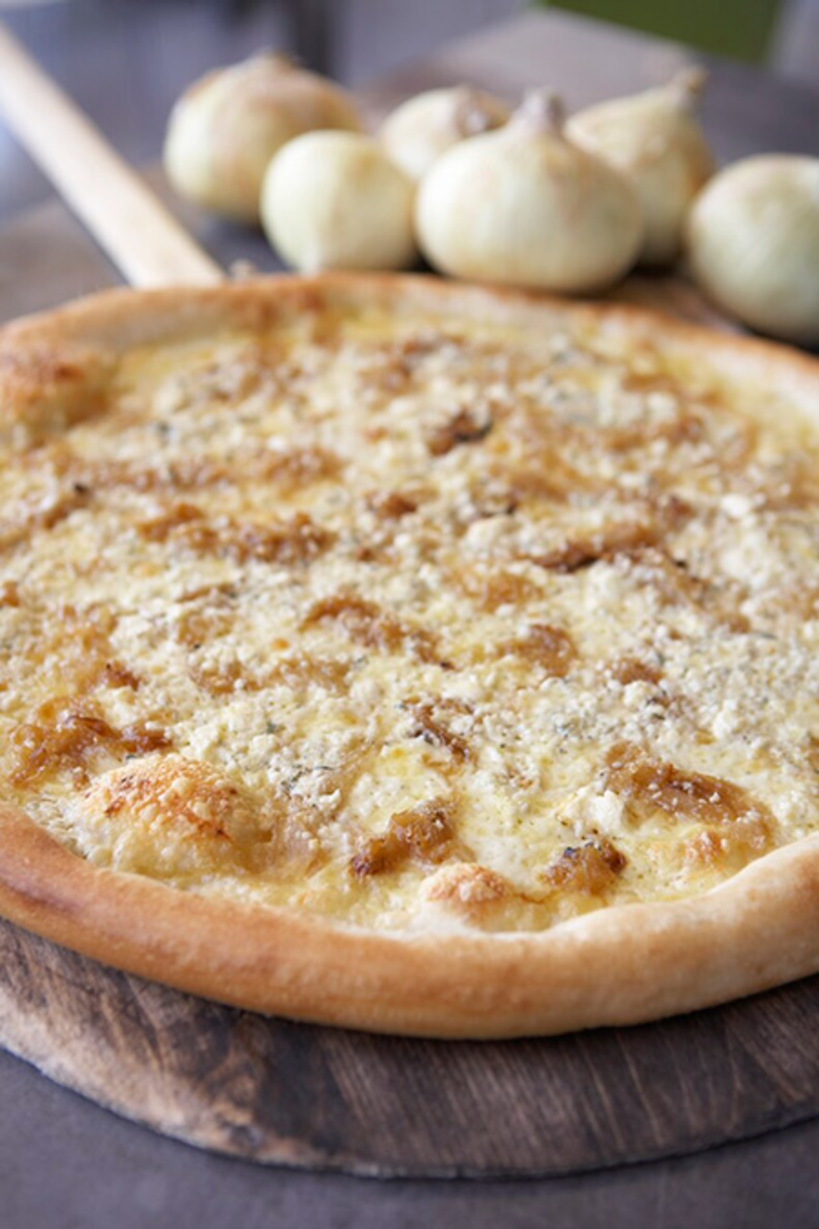 Our other seasonal, the Crostata, is our ode to the Walla Walla onion, Washington State's official state vegetable. The onions are celebrated across the country for their mild and sweet flavor and only available in the summer. The low sulfur of the fertile sandy soil of the Walla Walla region and the hot days and cool nights are what makes the onions unique. For our Crostata, we caramelize the Walla Walla's to a rich buttery sweetness, layer them over an olive oil base, and then top the pie with a blend of gorgonzola, mozzarella, and fontina cheese.