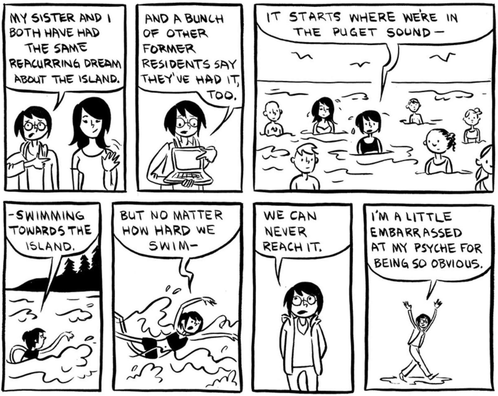 Colleen is a Xeric and Ignatz award-winning Seattle cartoonist, and an acclaimed graphic novelist. Her most recent graphic novel, Prison Island, is an autobiographical story of her childhood growing up on McNeil Island, the last island prison accessible only by air or boat in the United States. Colleen lived on the island for ten formative years. Her mother and father worked at the prison. As a teen, she took a ferry to school alongside inmates heading to and from freedom. While the experience wasn’t typical of most childhoods—she had to leave the local park where she played whenever inmates came to clean it up—she grew fond of the beauty of the island.