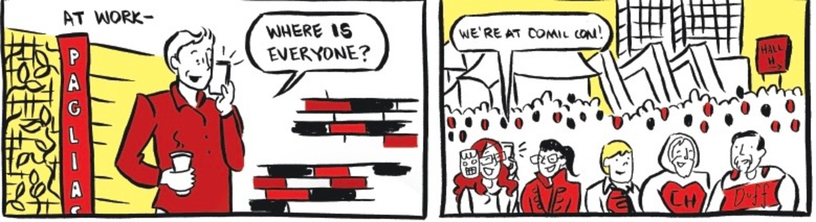 When we decided to focus on comics for our Spring newsletter, we began a search for a local cartoonist to help us with our cover. We asked around and Colleen Frakes' name kept popping up. She took take the story of Pagliacci co-owner Matt Galvin’s slow awakening to just how powerful comics have become as a cultural force and turned it into, well, a real comic.