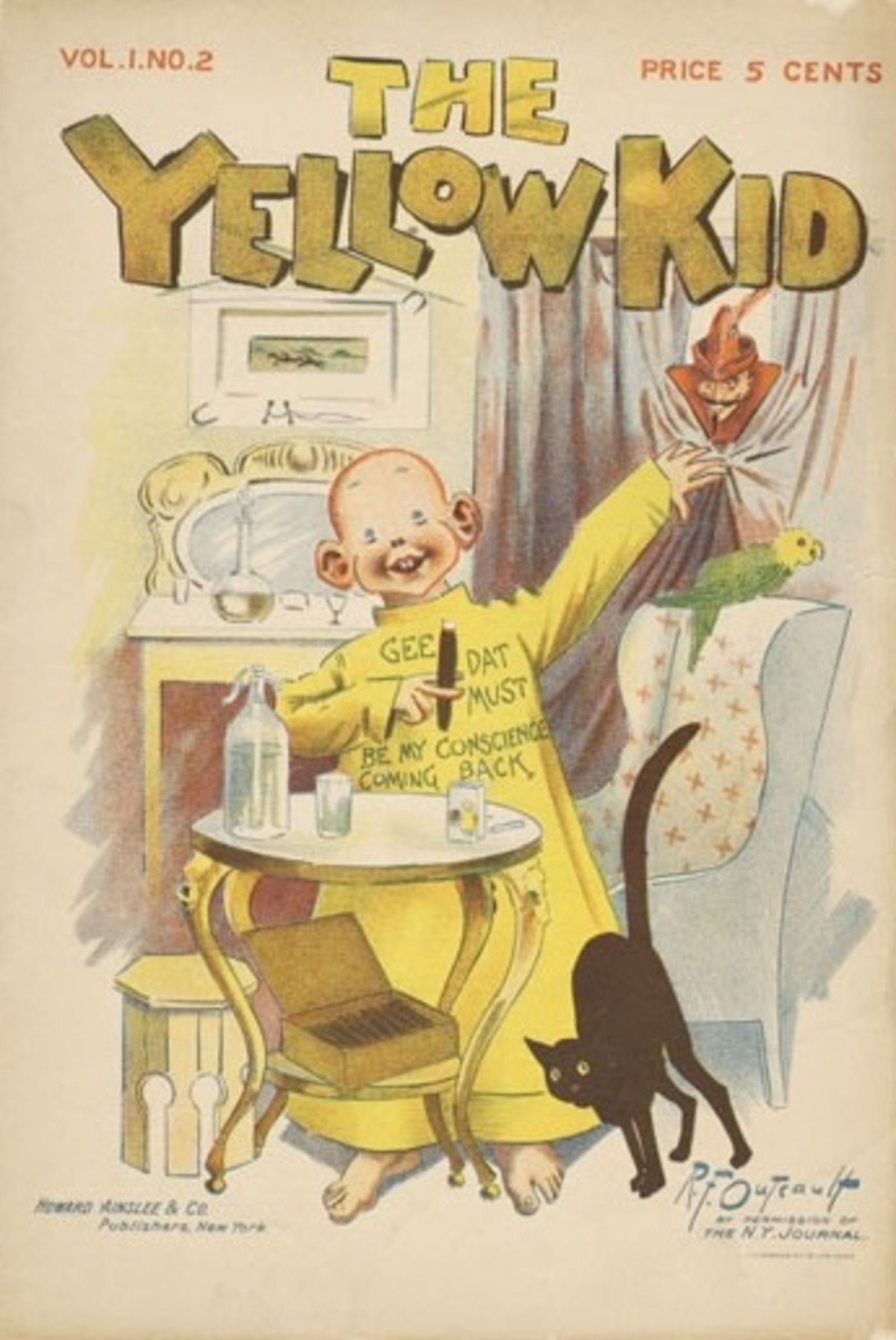 Many credit the first modern comic strip to Richard Outcault’s The Yellow Kid, which debuted in 1895, and was the first to use speech balloons. The strip helped sell newspapers and the comic industry was off and running.