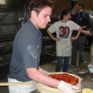 Mr. Young, the youngest and least tenured competitor (though he’s on his 8th year with Pagliacci), showed that he made a better pie faster than anyone else in Pagliacci. The home crowd cheered him afterwards as he toured the store with his victory peel. It might not have been Greg Gumbel and “One Shining Moment” but it was very Mike Young.