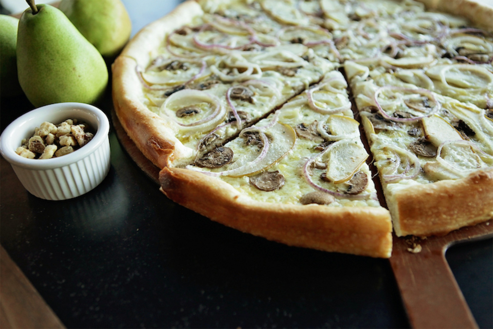 Our Pear Primo takes inspiration from Washington state’s late-season pear harvest and takes its flavor cues from the classic Italian combination of pear, walnut, and gorgonzola. The strong taste of creamy, piquant gorgonzola is softened by the sweet and juicy pears and enriched by the crunchy walnuts. Mushrooms and red onions round it off. All this over a blend of fontina and mozzarella on an olive oil base.