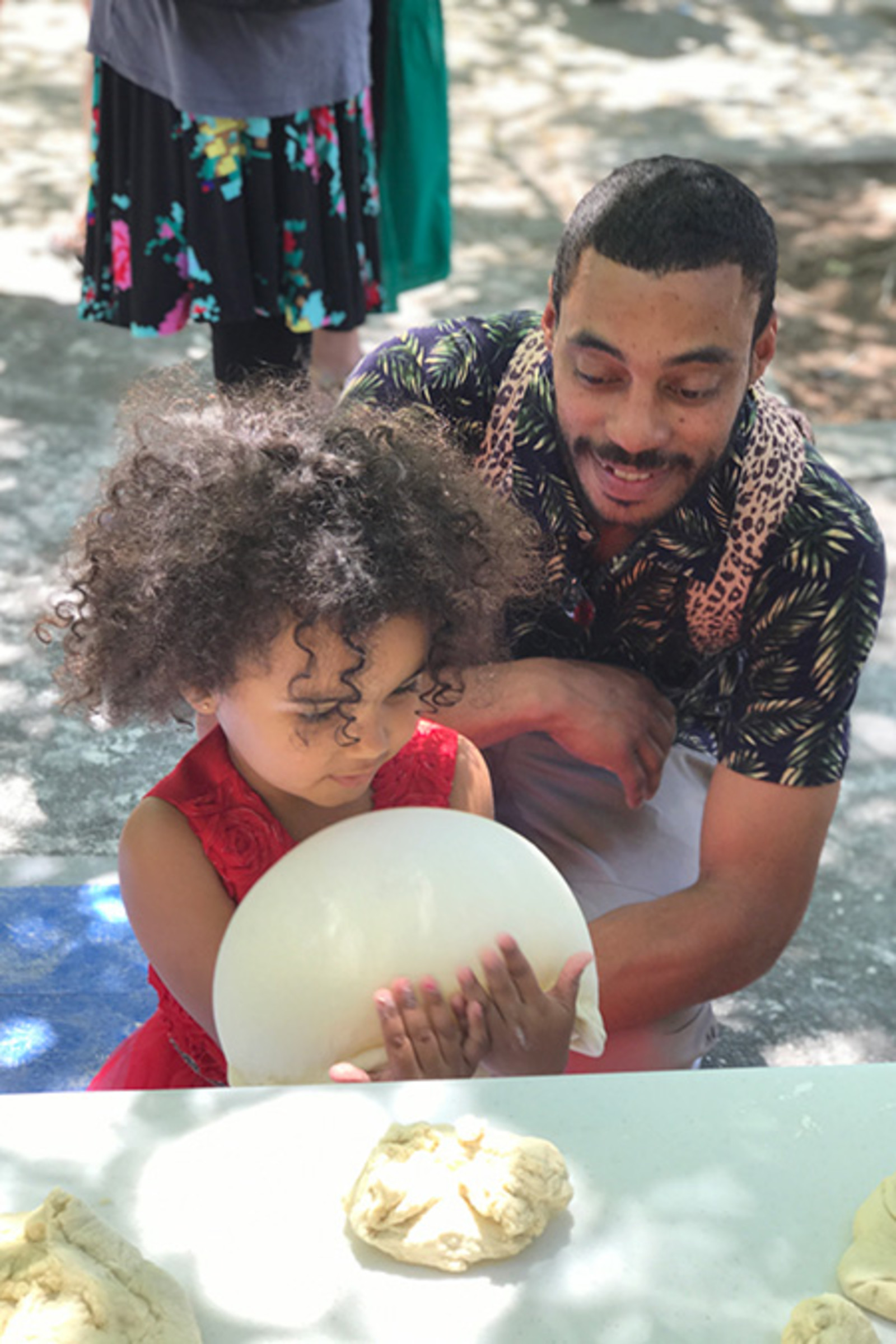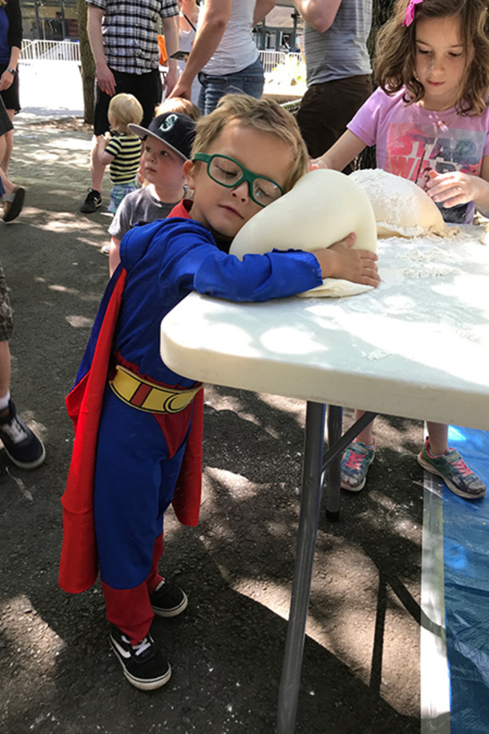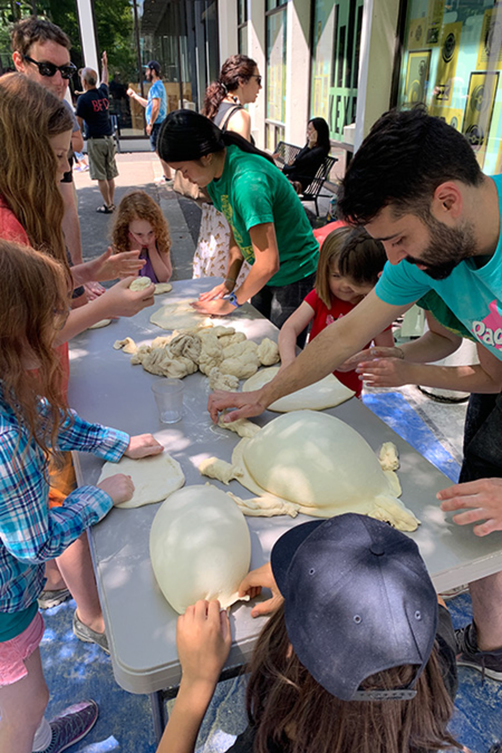 Armed with trays and trays of dough, our best cooks are there to teach the youngsters (and their parents) how to toss dough like a pizzaiolo. Spinning dough flies through the air and creativity is the only rule. Some want all the technical tips we can offer, and try and try to spin it like a pro. Others care less about pizza and prefer to make dough babies, purses, hats, pillows—you name it, they've made it.