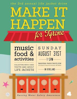 As a tribute to Tyrone, his family is partnering with Seattle Children’s Hospital for the Third Annual Life Jacket Drive. This event raises awareness around water safety and gives more people access to life jackets. We’re proud to continue supporting this cause and we hope you will join us on Sunday in memory of Tyrone.