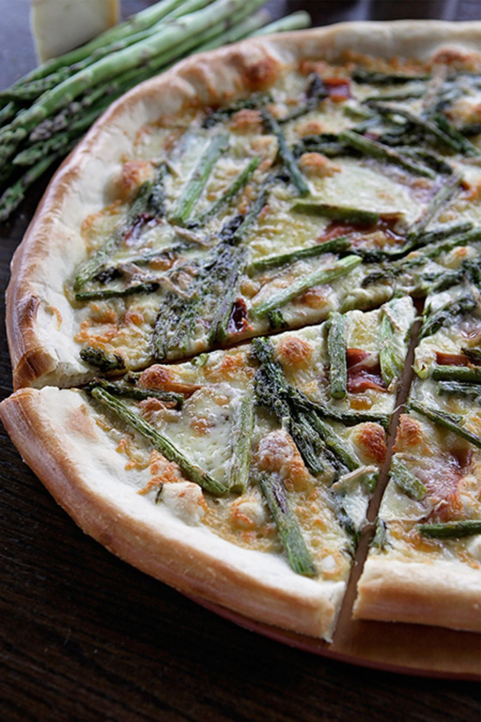 At Pagliacci Pizza, we celebrate this flavorful season with our Asparagus Prosciutto Primo. We roast local asparagus until it’s just tender—our favorite preparation. Then we layer it with smoky prosciutto, Taleggio (a mild cheese with a fruity tang), and mozzarella over an olive oil base. Order one and you’ll see why we’re thrilled every year when local asparagus arrives.