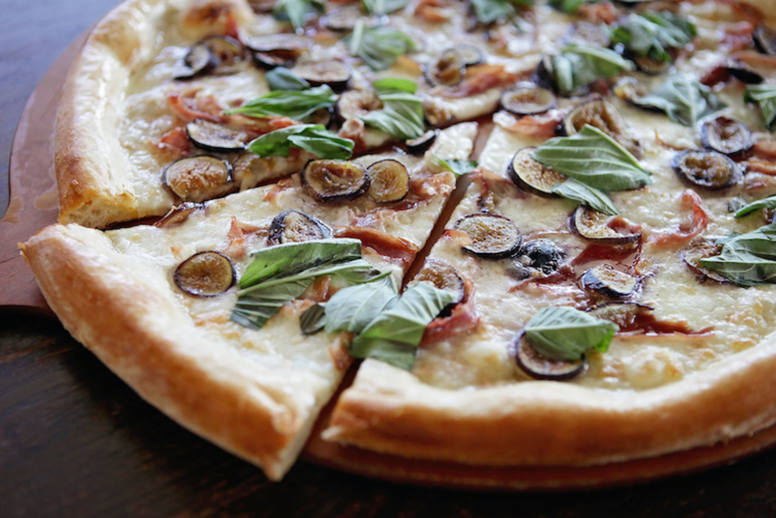 Our other seasonal, Prosciutto Fig Primo, takes cues from luscious late-season figs, which are bountiful right now. Fresh, ripe figs are great in savory dishes. Any guesses what our favorite preparation is? Right you are! Our Prosciutto Fig Primo takes ripe, jammy figs and pairs them with La Quercia’s prosciutto, the celebrated artisanal producer in Iowa and one of the best prosciuttos you can find. Fresh, creamy mozzarella and olive oil form the base for this subtly sweet and delicately salty tango of two of our favorite toppings.
