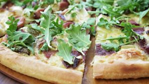 This month, we are celebrating Beecher's Handmade Cheese, located in Pike Place Market, with our Bacon Leek seasonal pizza. Beecher's Flagship is a nationally renowned, award-winning sharp cheddar cheese with a subtle sweetness, a velvety texture, and an assertive flavor that melts beautifully, perfect for pizza. Our Bacon Leek pizza also features crisp bacon, roasted leeks, mozzarella, and fresh arugula with a peppery kick.
