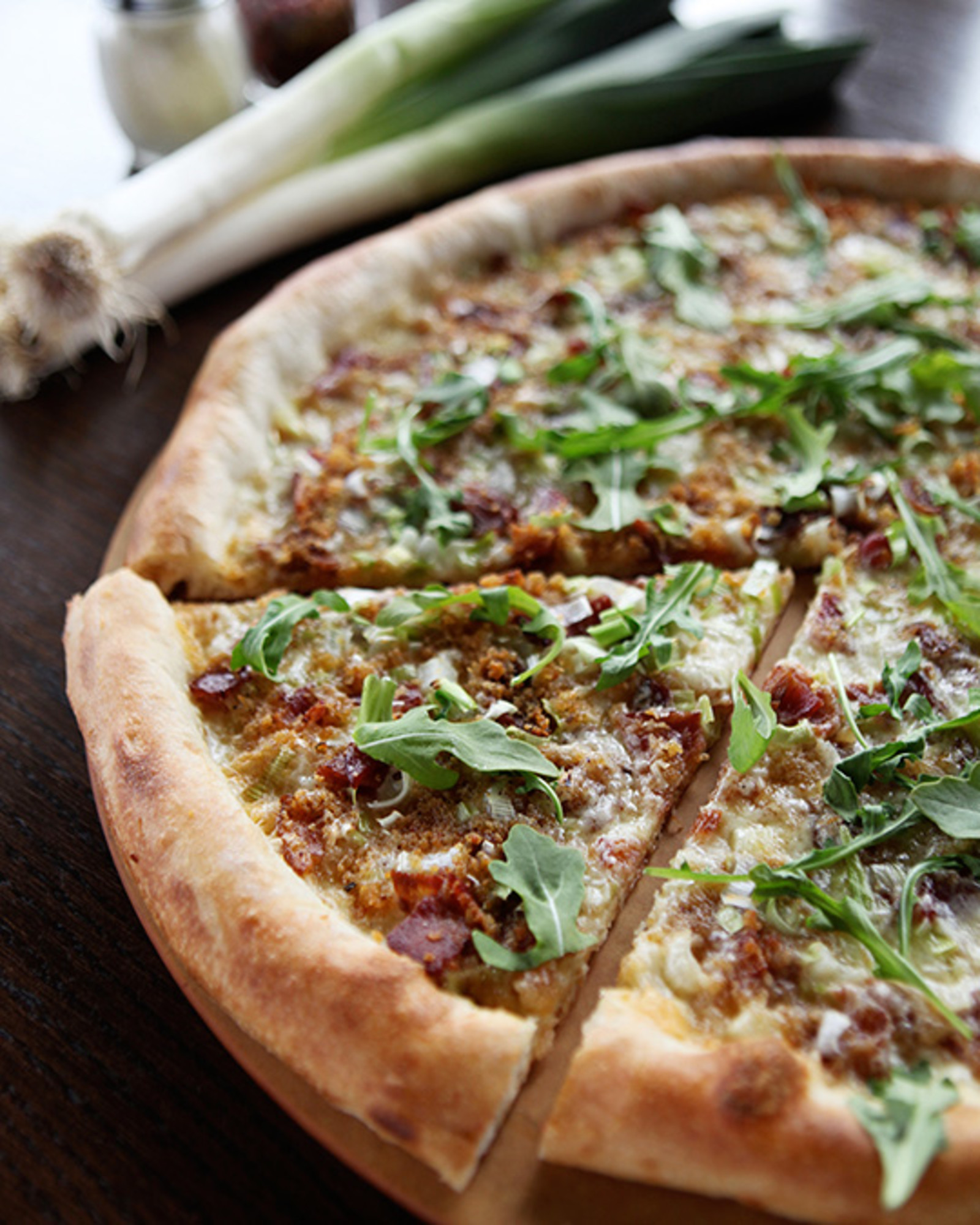 Coppa salami originated in the epicurean paradise of Emilia-Romagna, a region considered by many to be the culinary heart of Italy. The namesake meat of our Coppa Combo is a well-marbled, deep mahogany cut of pork shoulder that gets its brashness from smoky Spanish paprika and cumin. Coppa is typically a spicy salami, but we use a milder version. We top our coppa salami alongside our house-made pickled red onions, and serve it over fresh mozzarella and a crushed Italian tomato base. We top it with fresh arugula once it is pulled from the oven. Enjoy both seasonal pizzas through mid-May.