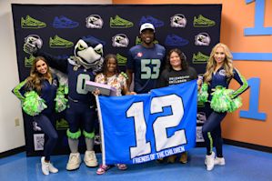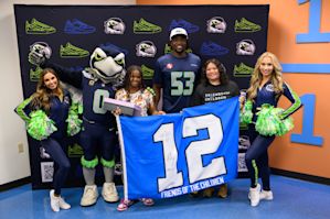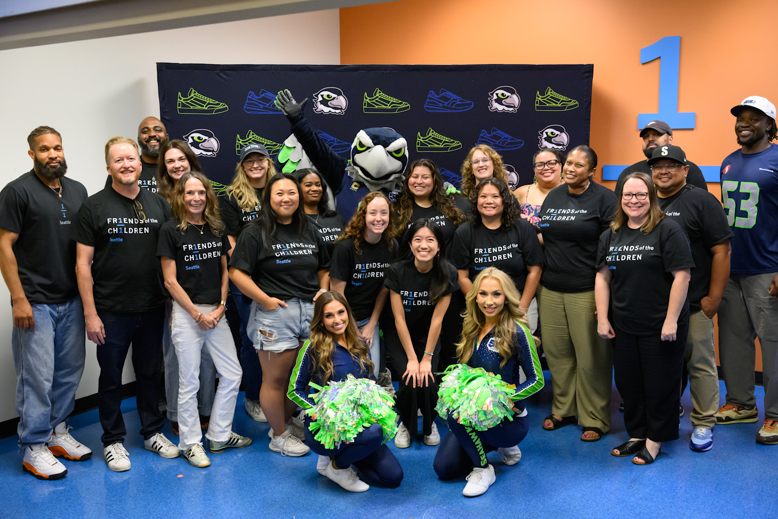 The Hawks sent Blitz, defensive end Boye Mafe, two Seahawks Dancers, and Nike shoes for every attendee. Kids enjoyed photos, high-fives, Pagliacci pizza, cupcakes, and time with their families and mentors at Friends’ Columbia City headquarters.