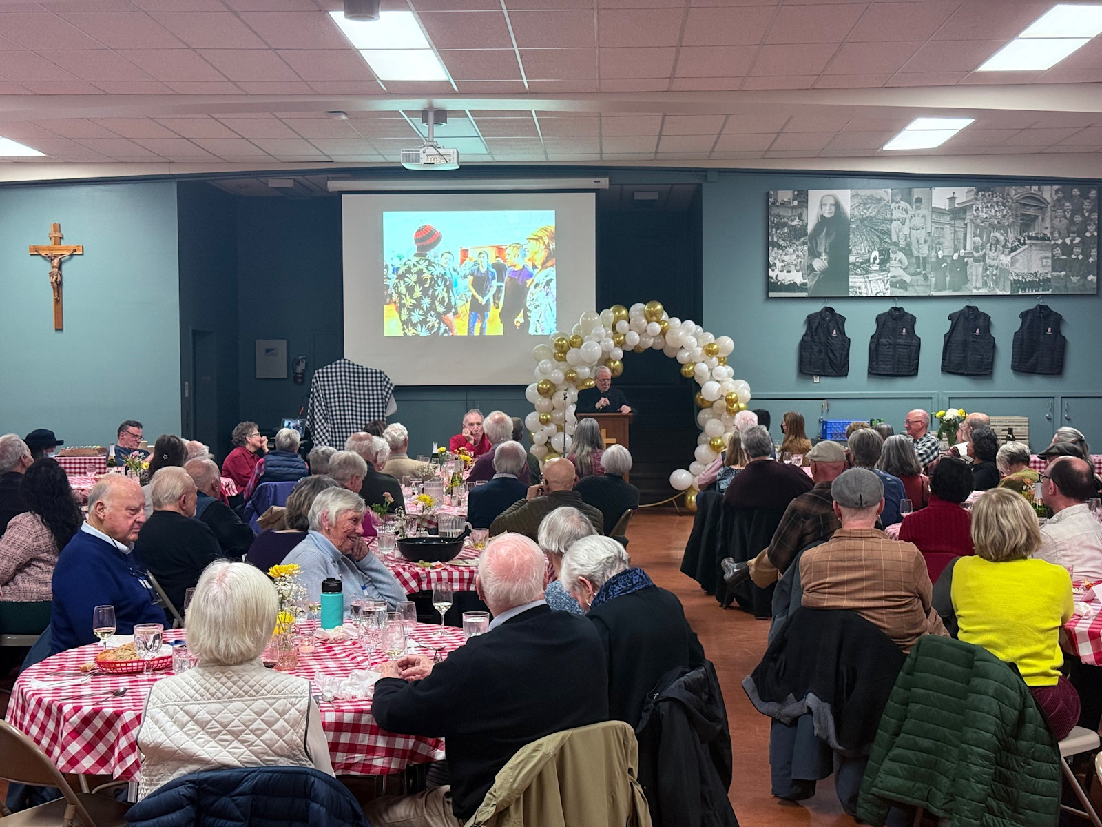 Fifty years of service and compassion were joyously celebrated on Saturday, February 22, in the St. James Cathedral Kitchen. More than a dozen volunteers from Pagliacci Pizza, led by Field Manager and longtime Kitchen supporter, Jeff Maneval, served a special meal to nearly 200 guests—past and present supporters who form the heart of this ministry.