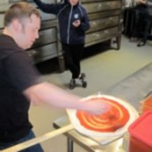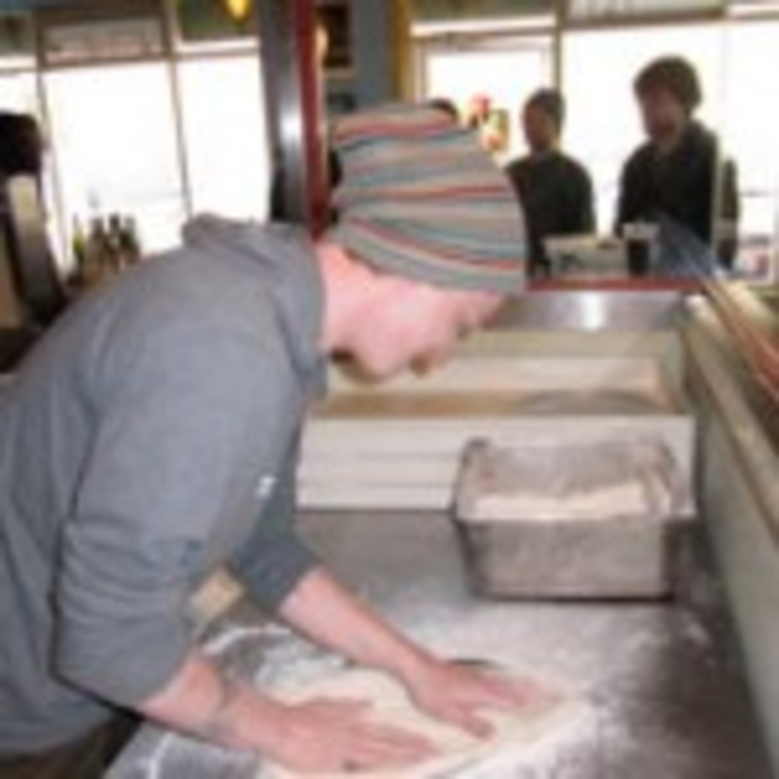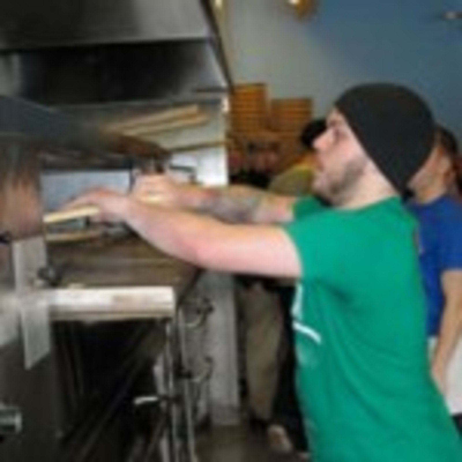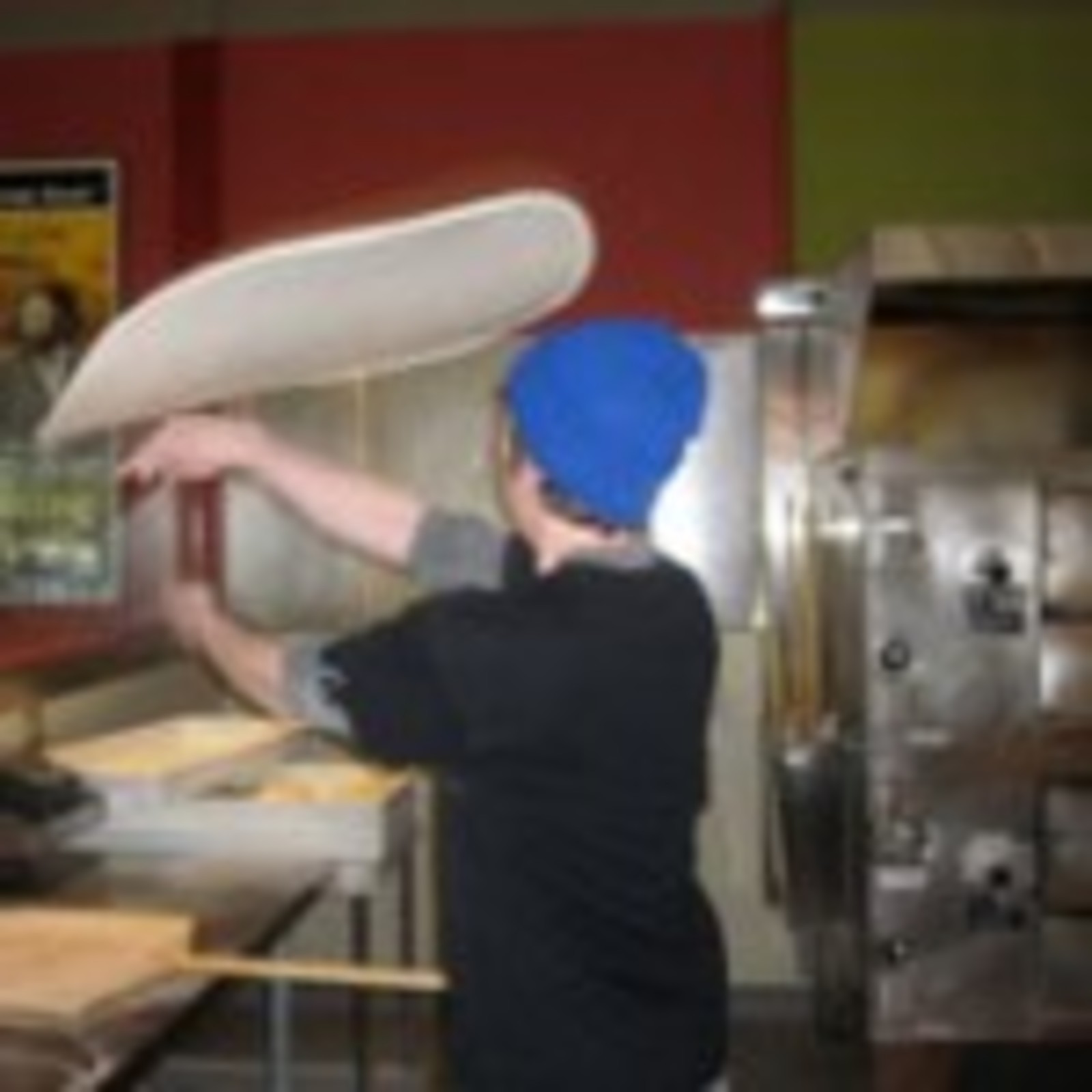On Saturday the second group of tossers came to Lake City Way to try and earn a berth into the finals. With a cumulative scoring system the competitors knew just how low they had to go. Perhaps jangled by nerves most of the tossers put a hole in their dough – a significant drag on time and quality scoring. Given the scores posted by the first group, most competitors were eliminated before their pie came out of the oven. (A note on scoring: like golf, the object is to go low. A point is added per second used making the pizza and points are added for quality flaws such as cheese distribution, crust appearance and quality of bake.) 102 was the score to beat in order to sneak into the top 4 and West Seattle AM Chris Bunger matched that – meaning that it could well come down to a quality tiebreaker to see who advanced to the finals. With most eliminated there was one tosser with a chance to beat 102. Shift Leader Scott Heikkinen of Crossroads had posted a score of 55 on his first day of competition. With a 34 second pizza he could afford 12 points on quality to move on. In true Crossroads spirit he did one better. His 11 on quality gave Scott an even 100 earning his spot in the Final 4. Moving on are GM Mike Baxley (145th), AM Sam Kosola (Juanita), Core Crew Zach Lindner (Main Street) and Shift Leader Scott Heikkinen (Crossroads). Each kitchen position is represented and Crossroads has a participant in the Final 4 for the third consecutive year – better than any other store. Last year’s champ, GM Paul Williams, feels vindicated for stepping aside for his crew and will be rooting for Scott. Look for the crowd to be behind Zach – the David looking to knock off all the managers and prove that cooks from our new store have skills too.