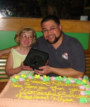 On January 9th, Pam Parks, a treasured member of the Pagliacci Family, passed away. Pam started here at the University Pizzeria on December 1st, 1981 as part of the University of Washington’s Job training program for people with disabilities, and while she was here she was named the 1992 Washington State Restaurant Association Worker of the Year. I vividly remember the first time I met Pam. I had just been promoted to General Manager of the University Pizzeria, leaving behind a crew that I had grown to love while training at our Queen Anne Pizzeria. I met Derrick Aiona, my District Manager here at the shop to get the keys to “my” new store, and while he was showing me around, Pam came to the front door and gave the 3 little knocks that she always gave to let me know that she was there. I let her in and Derrick introduced us. Right away I took a liking to her, (how could you not?) and her eternally sunny attitude was a godsend that first year as I adjusted to “being the boss”. She took great delight in reminding me to turn on the ovens after one terrible week when we forgot to turn them on….twice. It got better when she met my then girlfriend (and now wife), Amber. Every day after that, Pam would ask how she was doing, and on Wednesday, when the flowers were changed for the coming week she always kept one and asked that I take it home to Amber. I thought that she was just doing it for me, but I found out at her service that she did the same for Jeff Woodruff, our Director of Operations, who briefly worked here. We had a good laugh about that! I’ll also always think about how much Pam loved children. She always made a point of going over and saying hi to them when they came in. After she retired I took my son to visit her and she could hardly take her eyes off of him. She loved seeing him and gave him a bracelet before we left. Even now, occasionally people will come in and ask about the “little girl” that used to work here. I am sure that they would be shocked to know that she was in her 40’s when I worked with her, as she certainly did not look like it! I’m proud to tell them that I used to work with her and that she had a long, satisfying tenure here. Without fail, they always comment about how happy she looked and that she had such a great, smiling attitude. Rest in Peace, Pam. You are missed.