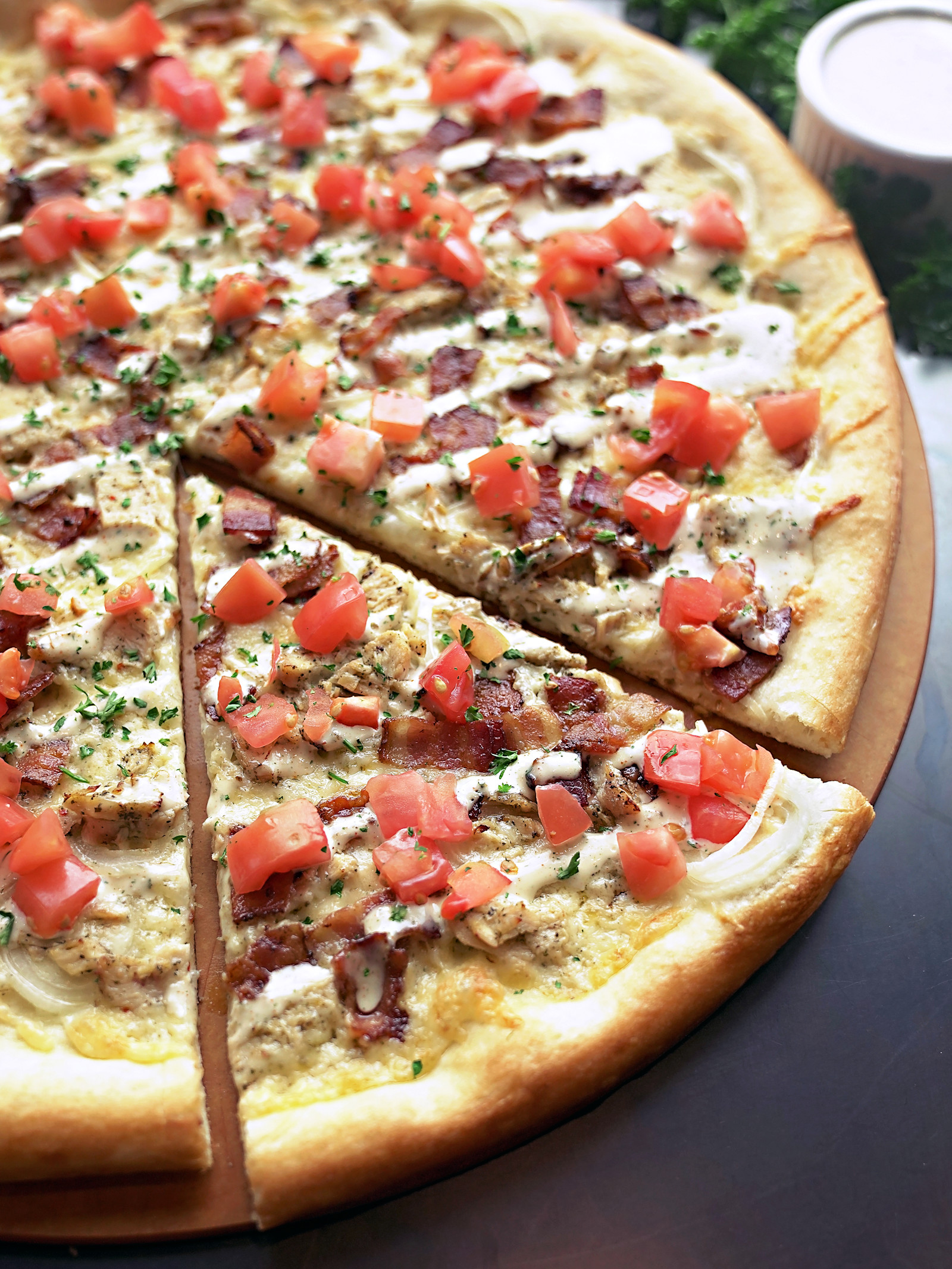 Our test kitchen is a place for creative experimentation, rigorous recipe development, and open-minded palates. Ideas float in from all corners. The team tastes, tweaks, repeats. Most experimental pizzas wind up being little more than that — experiments — and never make it out of committee. But a few inspire wider tastings. One flavor combination has repeatedly warranted serious consideration: bacon, chicken and ranch dressing. At every instance, Pagliacci co-owner Matt Galvin has stated: OMDB (over my dead body). Nonetheless, the food team persisted. With the latest tweak, taste won out! So here we are: The Ranch Primo is making its debut. The pizza features chicken, bacon, onions, and mozzarella over a ranch base. Out of the oven, we finish the pie with diced tomatoes, fresh parsley and a drizzle of ranch. Curious? Skeptical? Now’s your chance to decide for yourself.