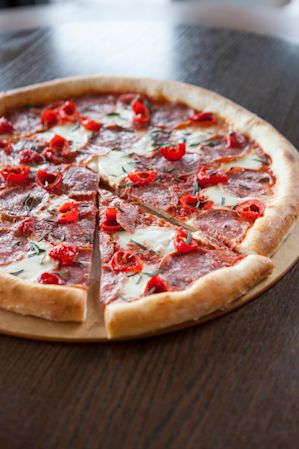 Salumi, the Pioneer Square purveyor of artisanal cured meats, has earned the national reputation of making the best salami anywhere. Their Rosmarino Salami, made with rosemary and peppercorns, is so delicate and flavorful you’ll understand why people rave about Salumi. Our Salame Piccante features a generous portion of the salami, fresh mozzarella, an Italian tomato base, and Peppadew sweet peppers, which add a mild spiciness. We add a sprinkle of fresh rosemary to the pie after baking.