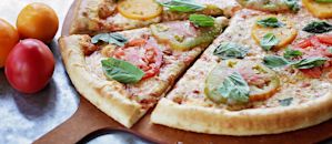 Our Summer Heirloom Pizza features these fabulous tomatoes layered with fresh basil on mozzarella and our seasoned tomato sauce. A dash of sea salt finishes it off. Enjoy this quintessential summer treat while you can!