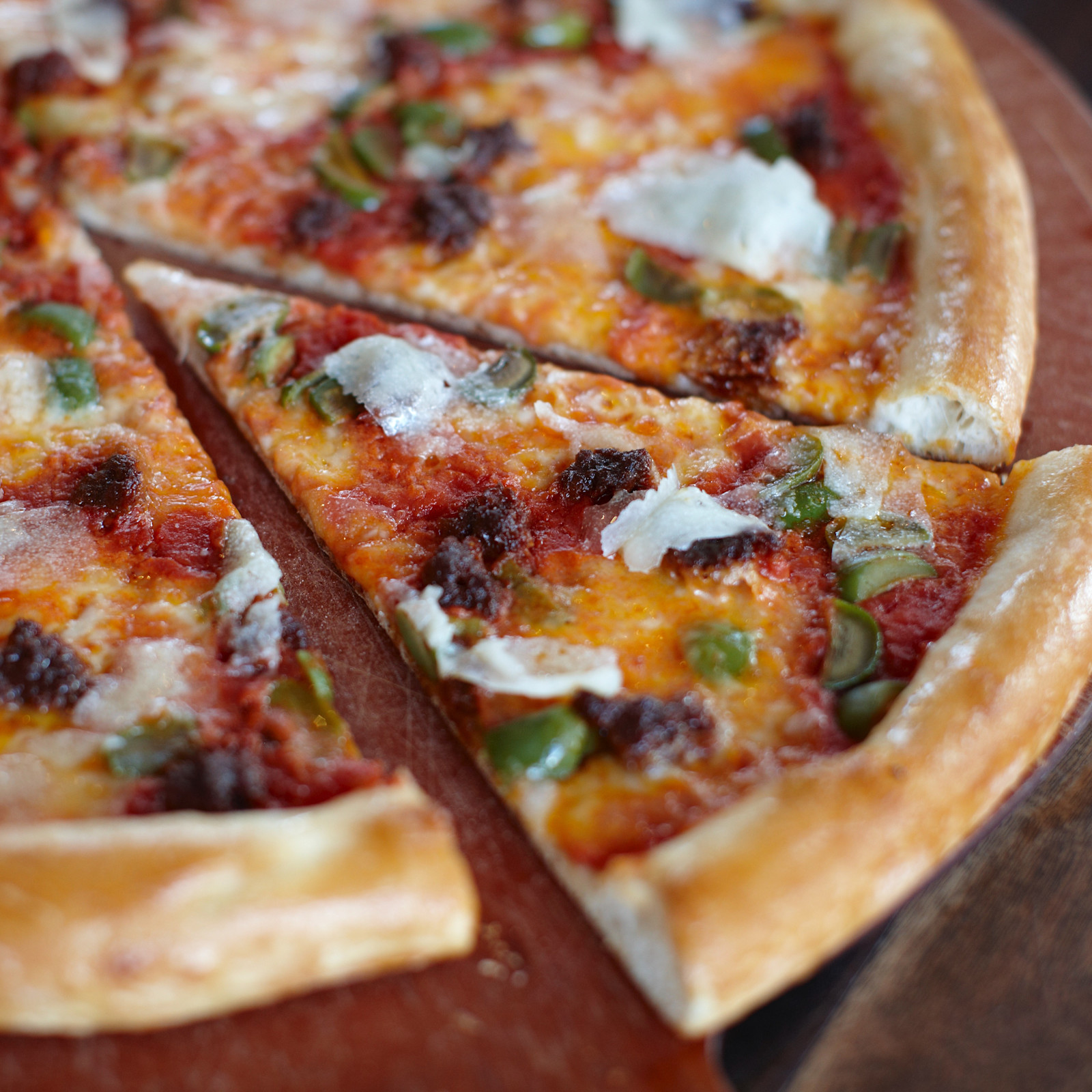The Matador Primo, our other seasonal, takes you from South America to the “toe” of Southern Italy. Over the centuries, many have fought over the region of Calabria. One regional specialty, ‘nduja, a spicy spreadable sausage, is a cultural byproduct of the 19th-century battles between the French and the Spanish. ‘Nduja is made with pork, herbs, spices and Calabrian peppers, which give the meat a distinctive red color and its heat. Our Matador Primo features ‘nduja made by La Quercia, buttery Castelvetrano olives, creamy fresh mozzarella and tangy Manchego cheese over crushed Italian tomatoes.