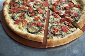 Our new seasonal, The Argentine, is one of those. It features Chimichurri, Argentina’s famous tangy green sauce. The herb-based sauce is made from chopped fresh parsley, cilantro and oregano with oil, garlic, and vinegar. We top the flavorful sauce with a mix of traditional and smoked mozzarellas and a trio of roasted vegetables: eggplant, bell peppers and cherry tomatoes. We grate parmesan over the top and finish The Argentine with freshly chopped parsley once it emerges from the oven.