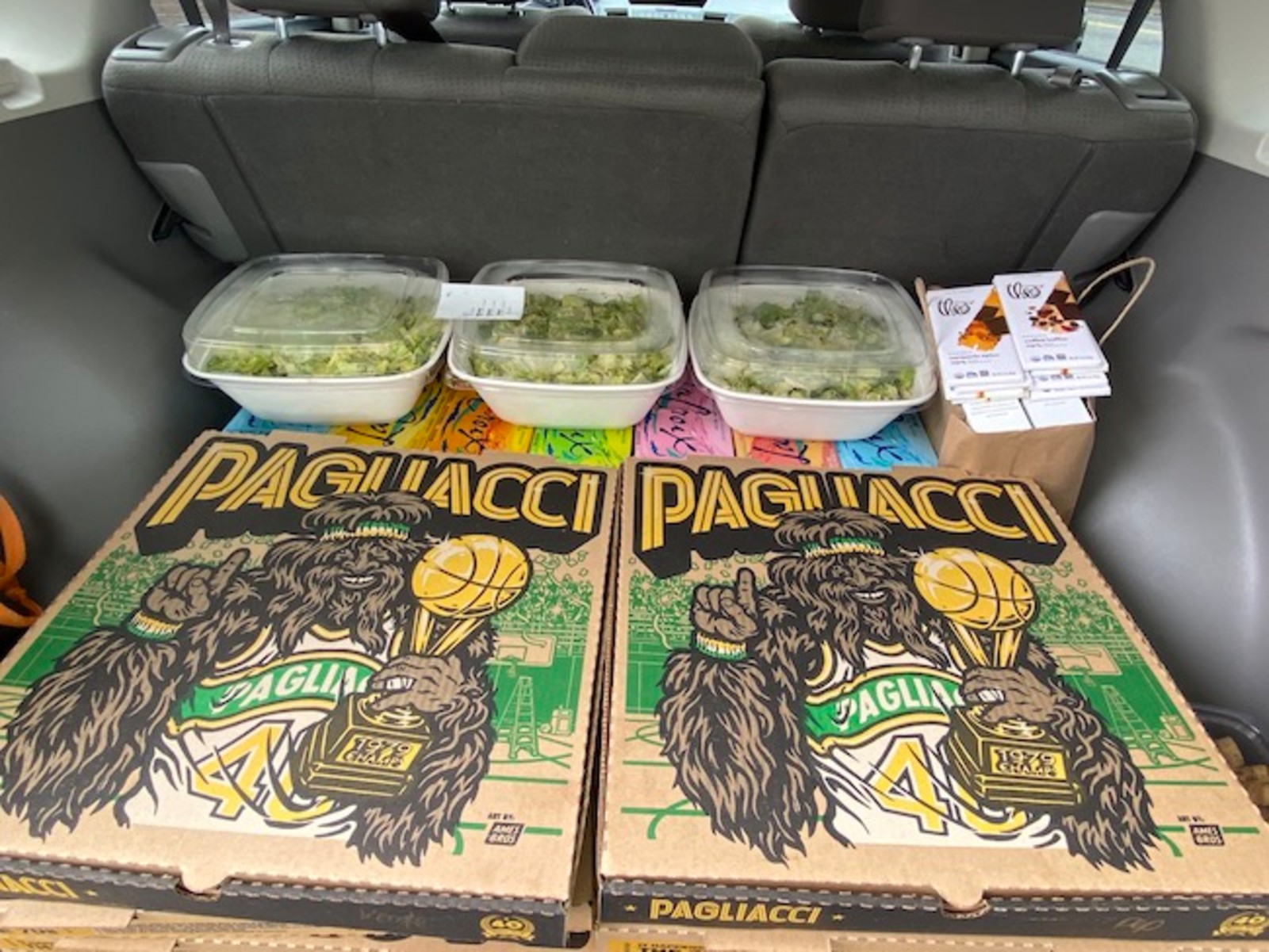 Ellen's family has been ordering from Pagliacci since 1998. She loves the pizza, and it's her go-to when she craves comfort food. She figured it'd be a welcome treat at the UW Virology Lab. "I was going to pay for the pizza and salad when Pagliacci surprised me by donating it," Ellen says. "I don't want to say Pagliacci 5,000 times in this article, but I'm really grateful. Without that first easy yes, and seeing what an impact it had, I don't know that I would have gone down this route. It takes a lot of time to coordinate everything, and Pagliacci has taken some of that burden off me."