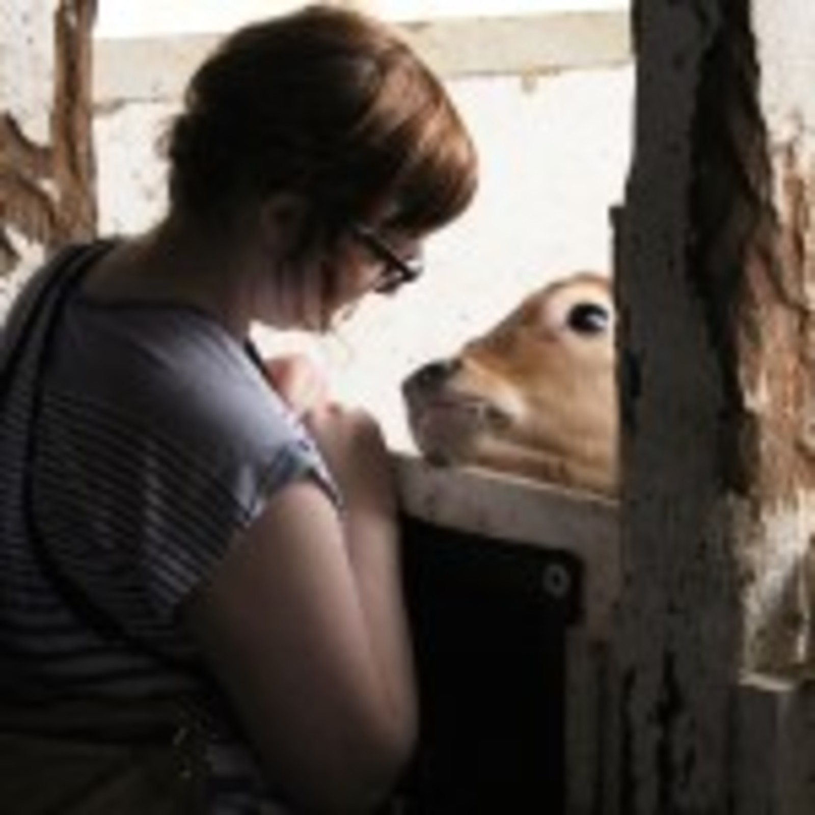Rachel Robillard from Pagliacci Support Central bonds with a calf.