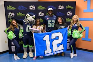 The Hawks sent Blitz, defensive end Boye Mafe, two Seahawks Dancers, and Nike shoes for every attendee. Kids enjoyed photos, high-fives.