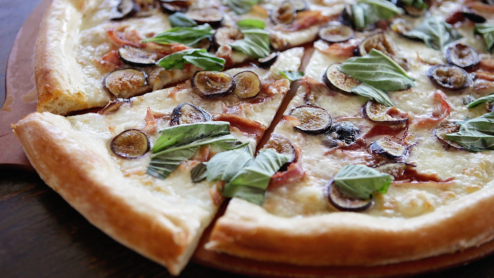 Our Prosciutto Fig is a fantastic combination of sweet, salty and creamy. Inspired by a favorite combo in Italy—farm-fresh figs and delicate prosciutto—the pizza also gets a base of fresh mozzarella, which takes it over the top. If you’re lamenting the end of summer, lose yourself for an evening in one of the best flavor medleys late summer has to offer: premium prosciutto layered with sliced ripe figs over fresh mozzarella on an olive oil base and garnished with fresh basil.