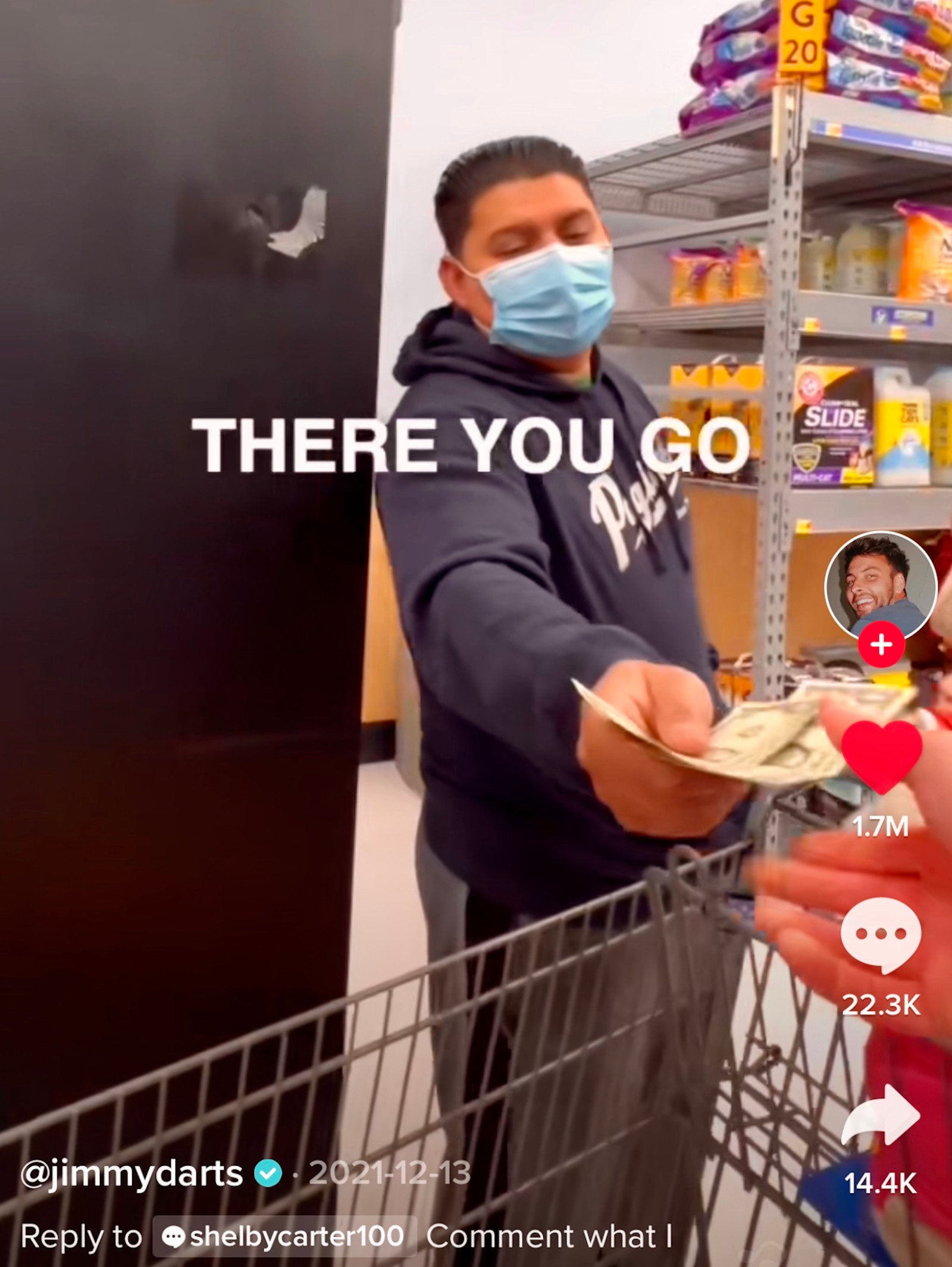 The guy was Jimmy Darts, a TikTok personality known for random acts of kindness. This past Christmas, Darts partnered with Dwayne Clark, the founder and chief executive officer of Aegis Living, to give away $10,000—and a shopping spree at Walmart (which totaled $2,202.86). Hugo even got his milk money back.