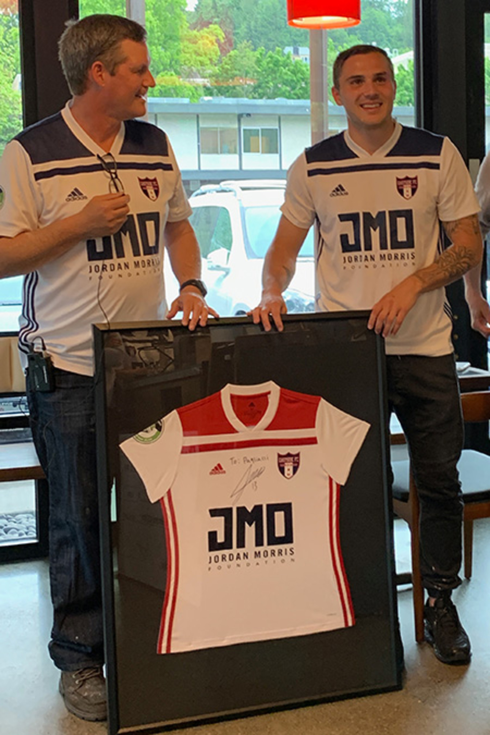 Jordan Morris and Chance Fry Present JMO Jersey to Pagliacci