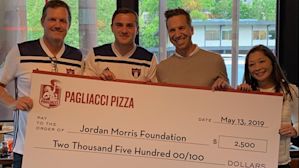 Jordan Morris and Chance Fry Accepting Pagliacci Donation to JMO Foundation