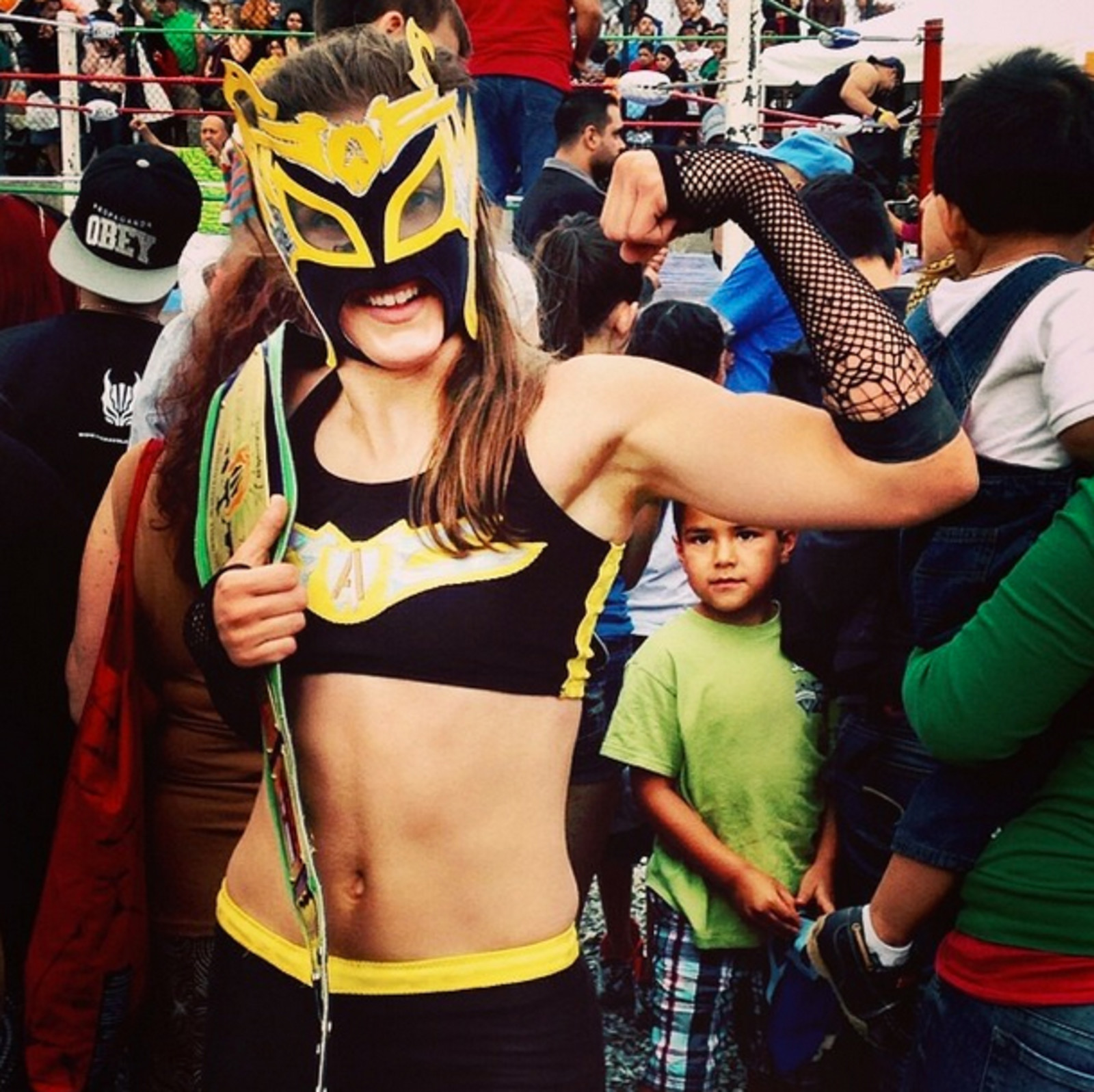 This might sound a bit like an all-male Fight Club, but women are welcome. Currently the club features one luchadora, whose stage name is Avispa—wasp in Spanish. And the spirit in the gym is far from angry or combative. It’s collaborative. “They are like a big family and some of the nicest people you could ever meet,” Ressler says. “They work their butts off to make shows great and to bring new moves to each match, and after the show they line up outside to meet the fans.”