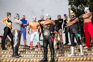 An unforgettable part of the lucha libre tradition is the colorful masks. After the pre-fight choreography, the stretching of muscles, the rubbing of liniments into taut necks and shoulders, the squeezing into spandex costumes, the most startling transformation comes when the luchador slips on the mask. Genial camaraderie vanishes and the fighter is transformed into his (or her) fierce alter-ego. Rarely do luchadores reveal their identities to fans. They stay in character, even after the show when shaking hands. Gomez, aka Profesor, is the exception.