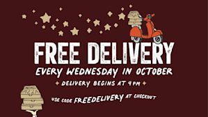 It’s midweek and you’re swamped. Let us help! We’ll take the load off by delivering dinner to your door — free (no delivery fee) every Wednesday in October. Order on our website or app and enter coupon code FREEDELIVERY, or give us a call and we’ll apply it for you. Then kick back and relax: dinner’s on the way. Free Wednesday delivery begins at 4 p.m.