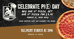 Pi Day is nearly upon us—but don’t worry if numbers aren’t your forte. At Pagliacci, the math on March 14 is easy: order one 11” pizza, and get a second 11” pizza for just $3.14.