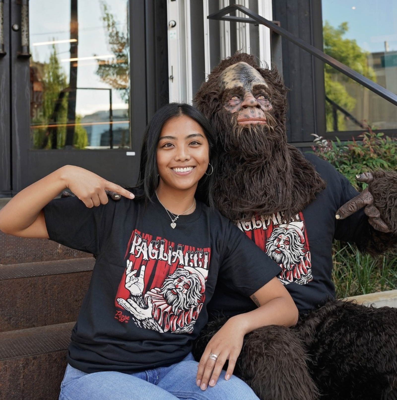In honor of the opera, we created a new 17-inch pizza box featuring original art by Ames Bros, the legendary Seattle-based graphic design firm with global reach. The box depicts Sasquatch trying to play the clown. Coby Shultz, one half of the dynamic duo behind Ames Bros wrote, “It’s been impossible to work on this and not belly laugh. The thought of Squatch being forced to perform and stuffed into an uncomfortable clown suit. He has stage fright and is really doing his best up there on the big stage.”