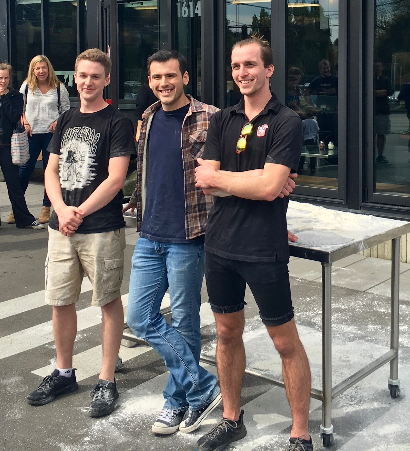 Chris Hewson manages the Edmonds store. Of James’ victory, he said, “James has worked at Pagliacci less than a year, which makes his win all the more impressive. He is constantly looking for ways to streamline our daily tasks. He is always open to new techniques and offers suggestions when he has an idea to keep the store cleaner or to get pizzas in the oven faster. He asks lots of questions to broaden not only his knowledge of the job but also to understand why we do things the way we do. Seeing him cut out his own cardboard practice screens and asking me to order extra dough so he could do a few practice runs was very motivating. Impressed by his efforts, the Edmonds crew rallied around him. His likable personality and work ethic made his victory all the sweeter.”