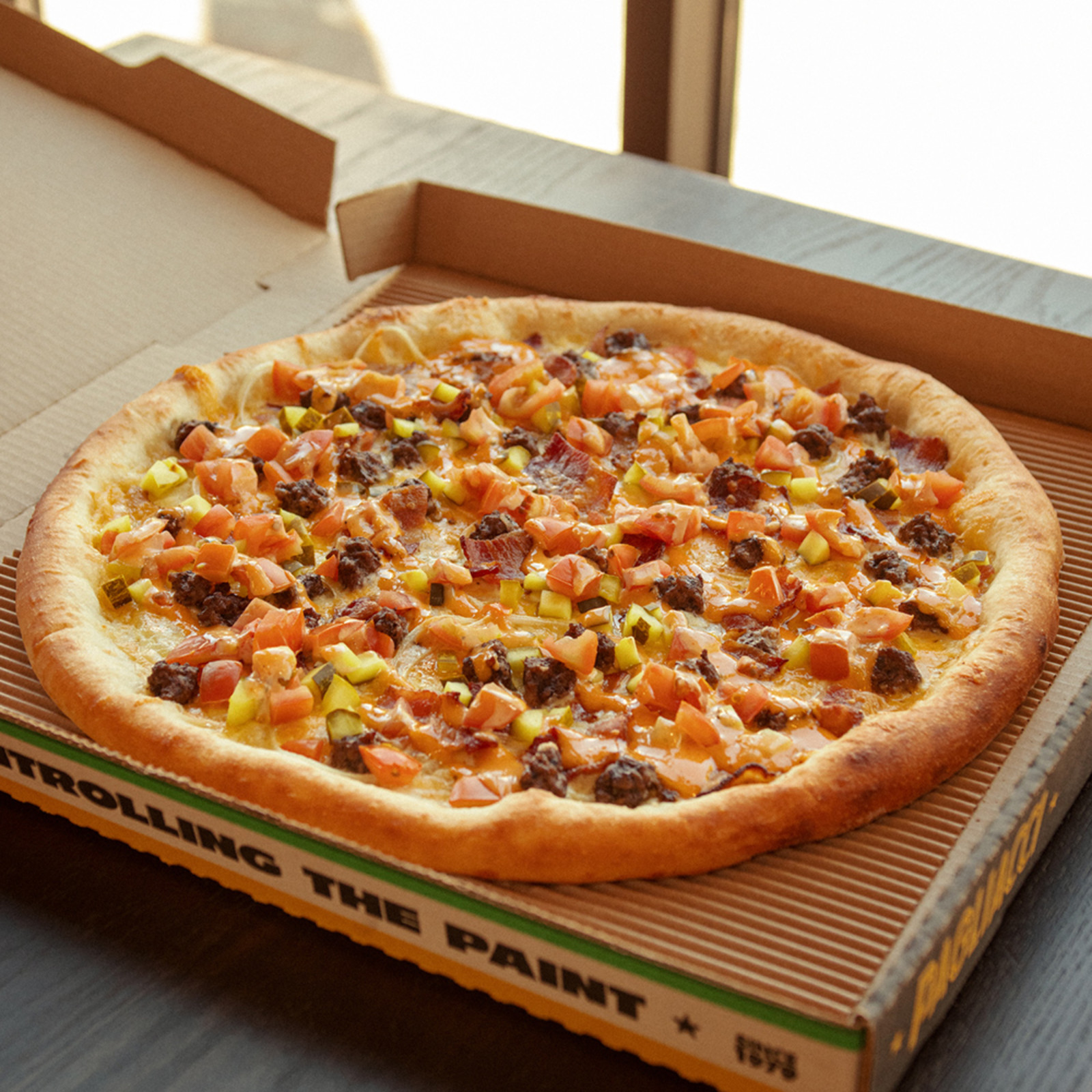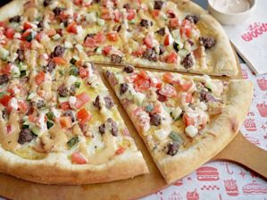 Our Lil Woody’s Primo starts with our classic pizza dough with a base layer of mozzarella topped with ground beef, bacon, onions, cheddar, pickles, tomatoes and Lil Woody’s fry sauce. We’re running the fan-favorite pizza for four weeks starting on May 19.