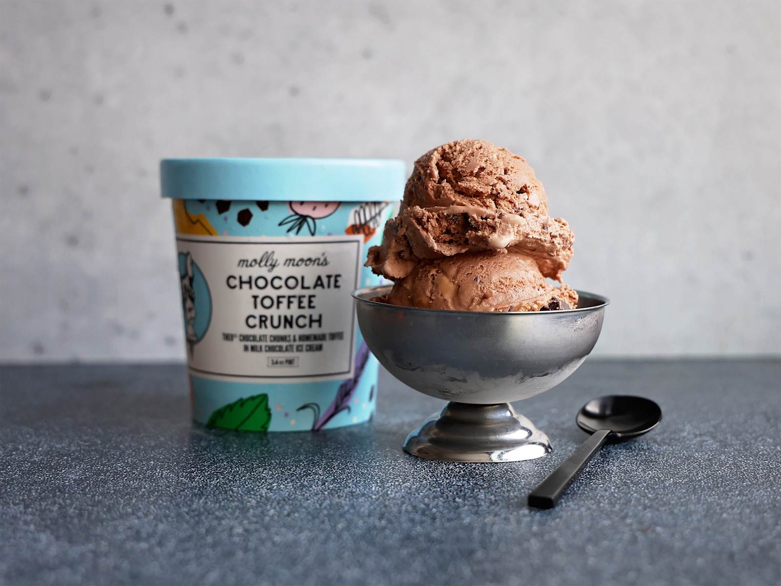 Molly Moon’s makes their homemade toffee with plenty of butter, breaks it into small chunks, and stirs it into milk chocolate ice cream studded with flakes of K’ul chocolate. It’s a craveable blend of buttery, chocolatey, creamy, and crunchy.