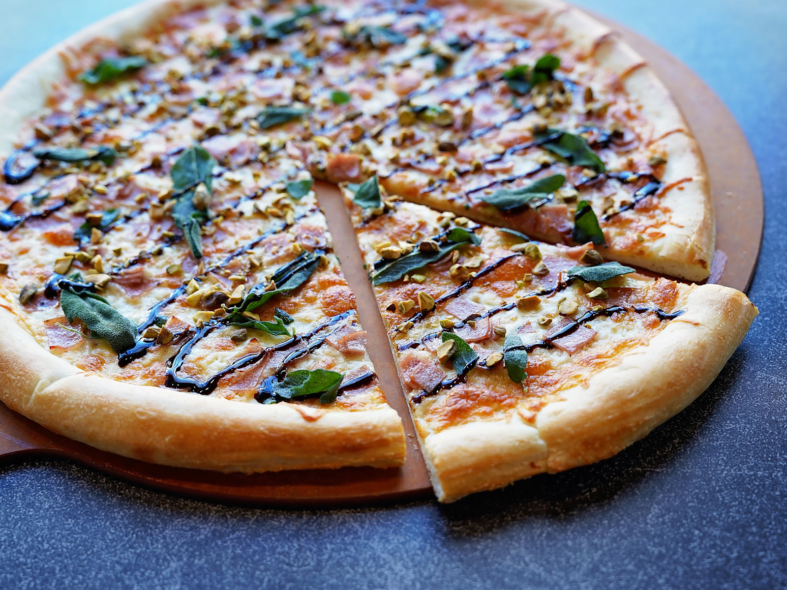 We’re always on the hunt for great pizza and the inspiration for this one comes from Chef Ori Menashe’s Bestia, a celebrated rustic Italian restaurant in the Arts District of LA. Mortadella and lightly fried sage accompany mozzarella and caciocavallo, a buttery cheese with a tangy bite, over a roasted garlic oil base. We top the pie with a drizzle of balsamic reduction and serve it with a side of pistachios (we recommend putting them on the pizza!) Check it out on the menu!