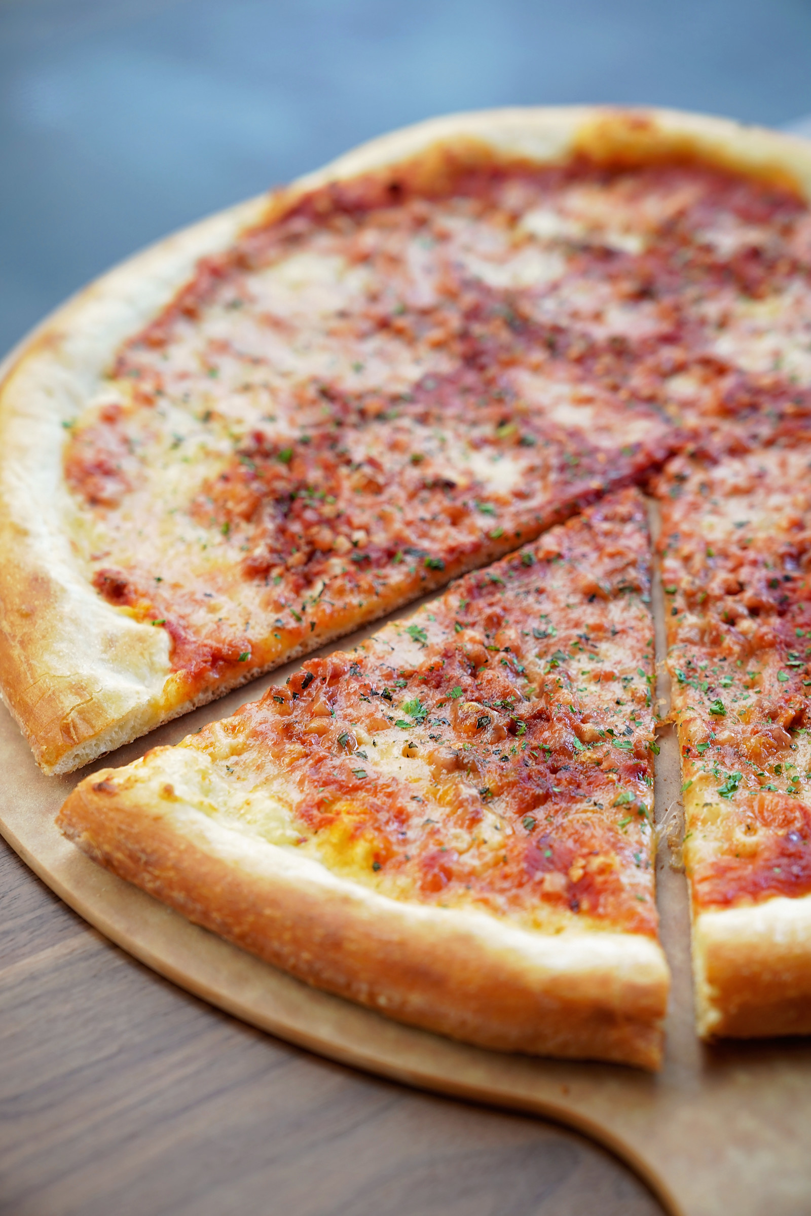 Our seasonal Amatriciana pizza takes its name and flavors from the pasta famous to Rome. Like many things with a long past, dig deep enough, and you find some historical controversy. Some Romans claim the recipe originated in Rome, even though it bears the name of Amatrice, the medieval Italian hill town in central Italy. In Amatrice, those are fighting words—the namesake pasta is their heritage and an indelible contribution to Italian cuisine. What everyone will agree on is that it’s a wonderful pasta—and that their version is the best. As much as we love the pasta, we think our Amatriciana pizza deserves a nod. It stars the rich salty-sweetness of pancetta, a bacon-like meat. We layer crisp pancetta over creamy fresh mozzarella and a crushed Italian tomato base seasoned with chili pepper flakes. After baking, we finish the pie with a sprinkle of fresh parsley.