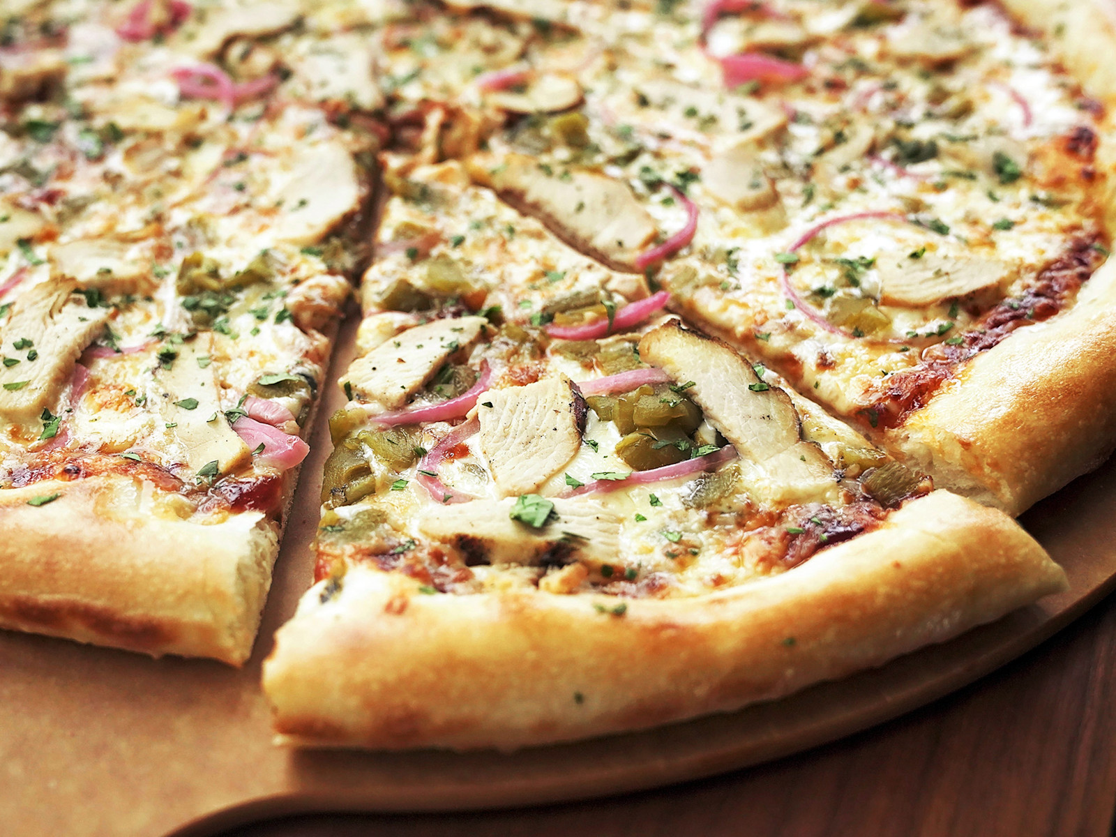 Hatch chiles bring the earthy heat New Mexican cuisine is known for, and they're right at home on our BBQ Chicken Primo. Roasted Hatch chiles join chicken, pickled red onions, and mozzarella over Jack's Smoked Jalapeño BBQ Sauce, with a finishing scatter of fresh cilantro for brightness.