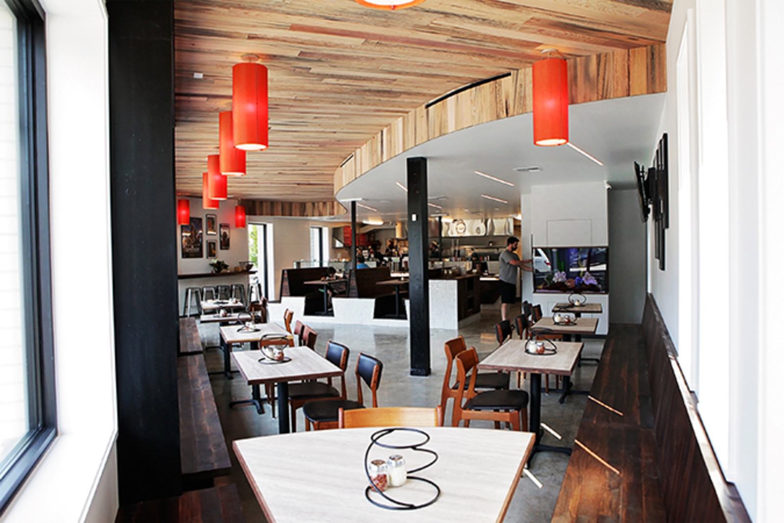 Few not in the know would guess the essential ingredient that made the whole remodel possible—50,000 pounds of concrete. The biggest challenge we faced in improving the customer experience and workflow was a series of columns that support the multi-story apartment building above the store. Robbie says, “The space was filled with the world’s most unfortunately located pillars all around the store, including one right in the middle of the walk-in, which was fun.” Workers dug a six-foot trench and poured 25 tons of concrete to form an arch that supports the building. “It looks really cool and opened up the flow of the space,” Robbie says.