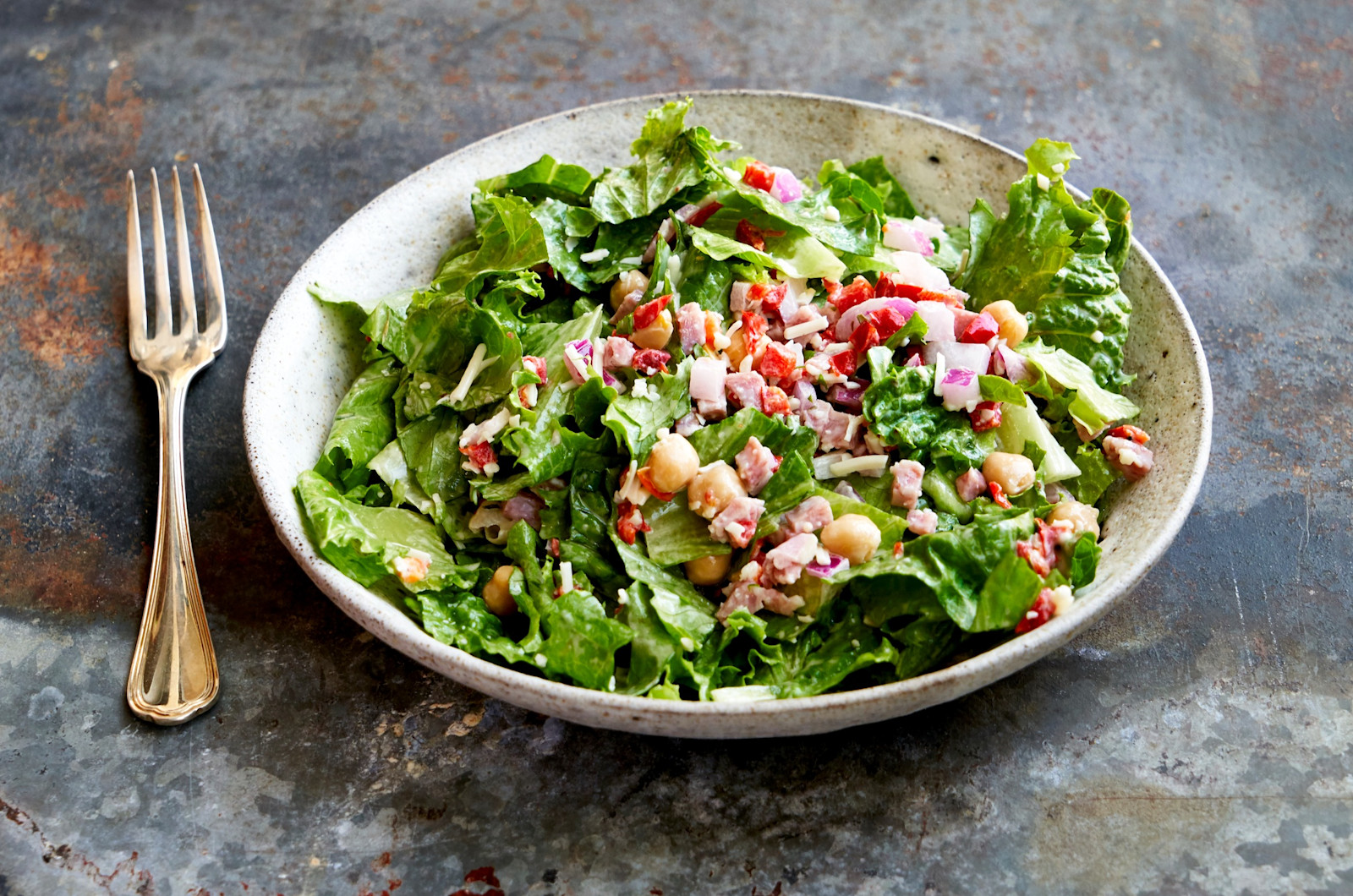 Our Pagliaccio Salad has been on the menu for more than 40 years, and we couldn’t change it without risking a rebellion. It’s Pagliacci founder Dorene Centioli’s spin on a chopped salad. If you don’t know how to pronounce the name (Pa-lee-ah-chee-o), feel free to call it the “Chop Chop,” as many of our customers do—we still make it for them regardless! The legendary salad (at least in Seattle) is made with crispy green leaf lettuce, garbanzo beans, diced red peppers, kasseri cheese (made by local cheesemaker Ferndale Farmstead), salami, and red onions tossed in our house-made Dijon vinaigrette.