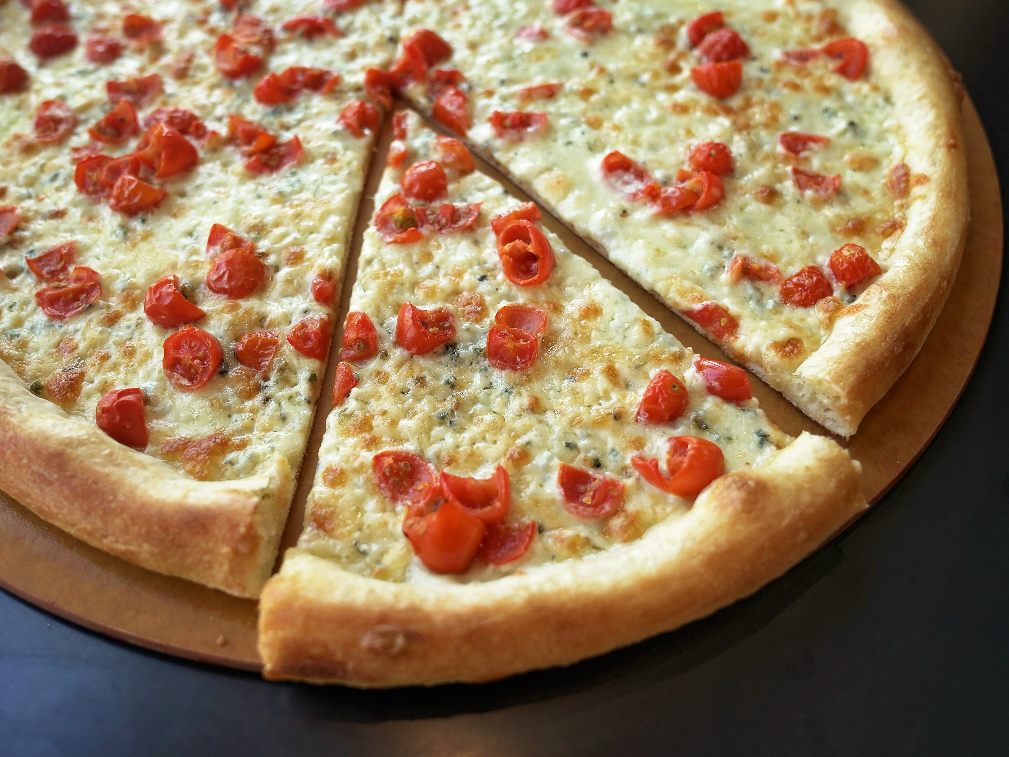 A super-thin crust covered with olive oil, sprinkled with red pepper flakes, garlic, fresh parsley, Fontina and mozzarella. Cut into small diamonds.