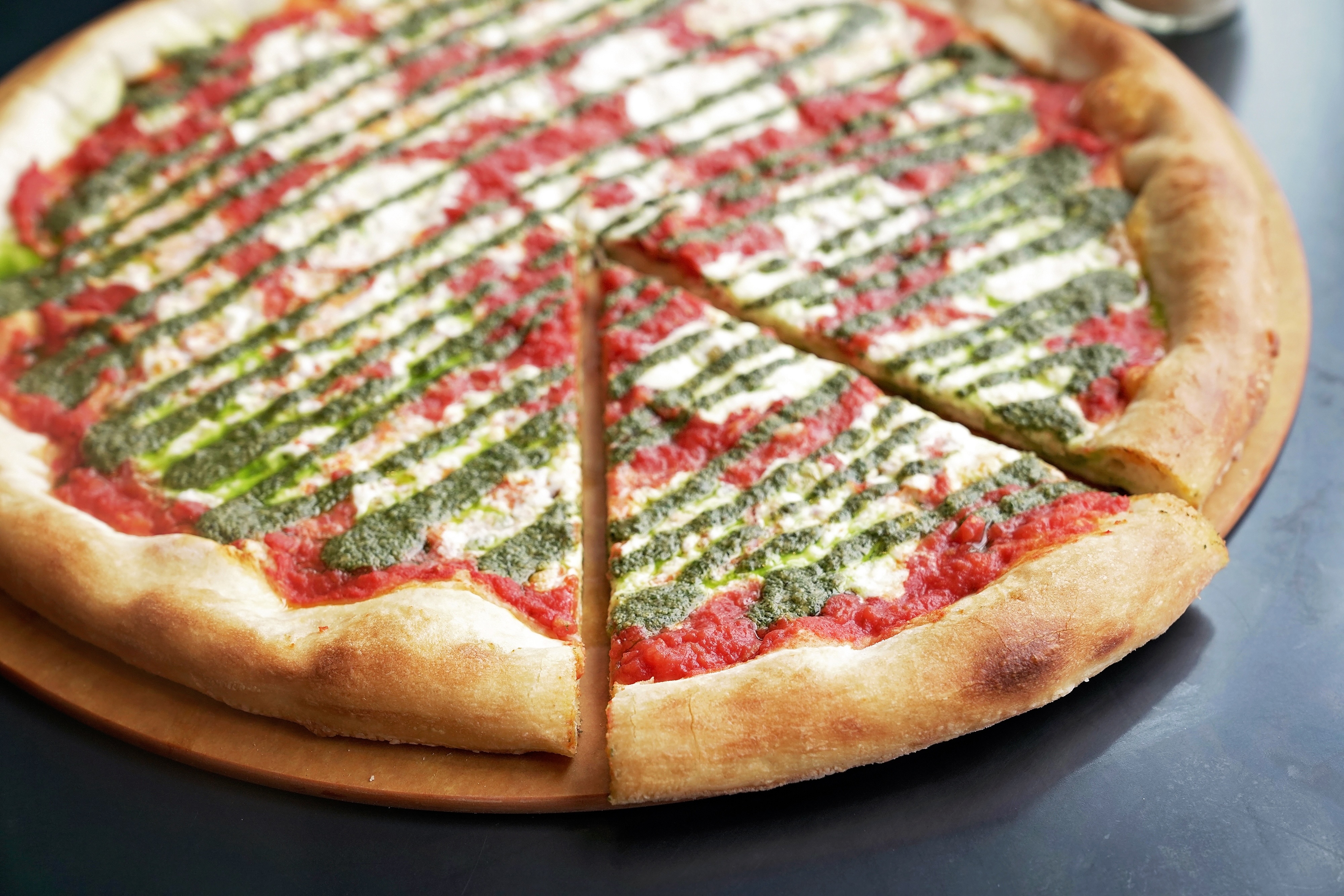 A super-thin crust covered with olive oil, sprinkled with red pepper flakes, garlic, fresh parsley, Fontina and mozzarella. Cut into small diamonds.