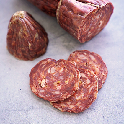 A mildly spicy Calabrian-style pork salami seasoned with red wine, peppercorns and chili peppers.
